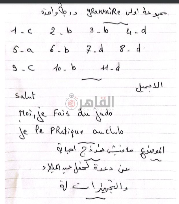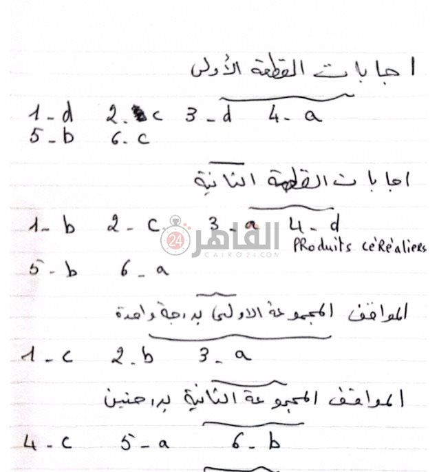 وجاءت إجابات أسئلة امتحان اللغة الفرنسية كالآتي: