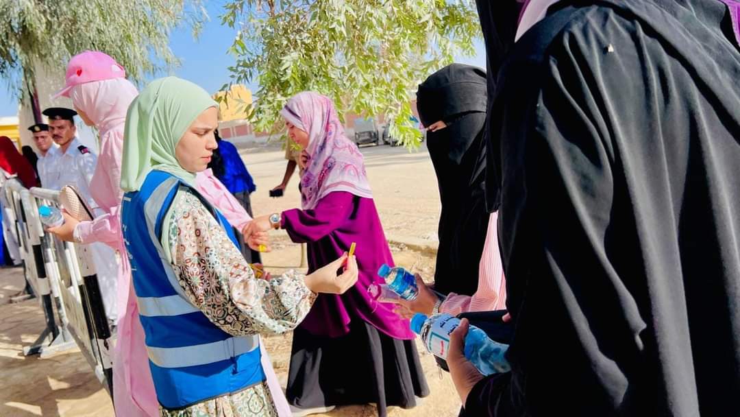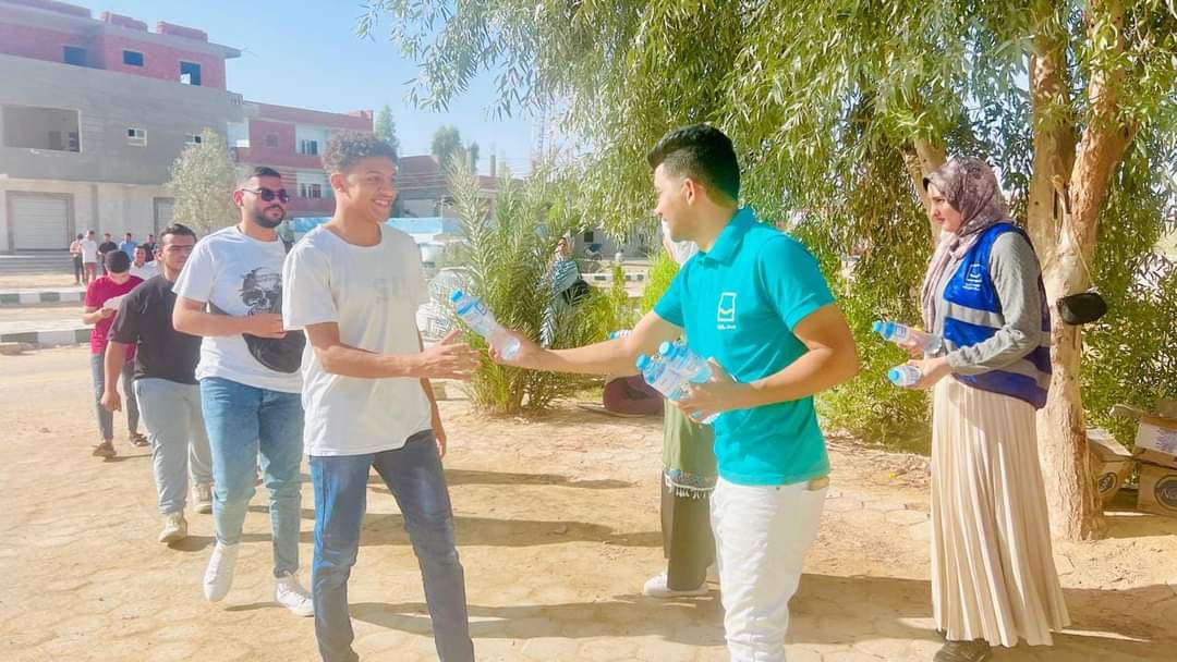 حياة كريمة توزع زجاجات مياه مثلجة على طلاب الثانوية العامة بالوادي الجديد| صور