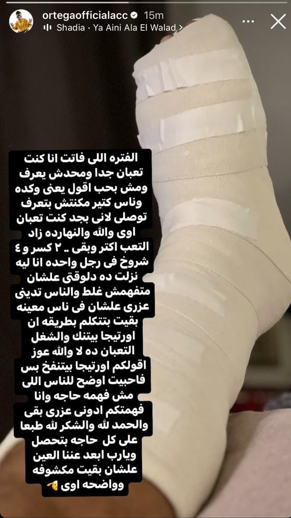 إصابة أورتيجا بكسر في القدم.. ويعلق: ربنا يبعد العين اللي بقت مكشوفة وواضحة