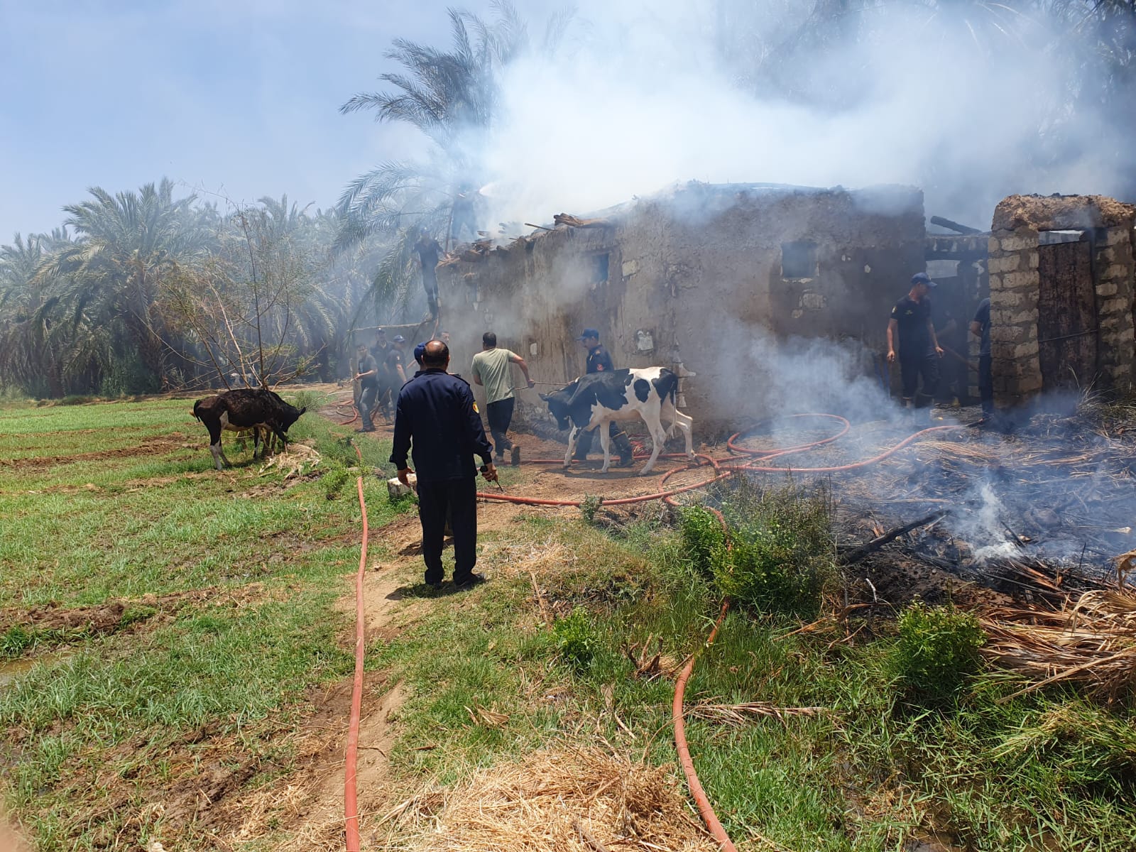 حريق في مزرعة نخيل وحظائر بالوادي الجديد| صور