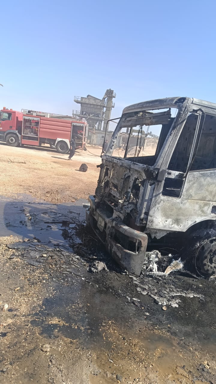حريق بموقع لشركة النيل لرصف الطرق بالوادي الجديد|صور