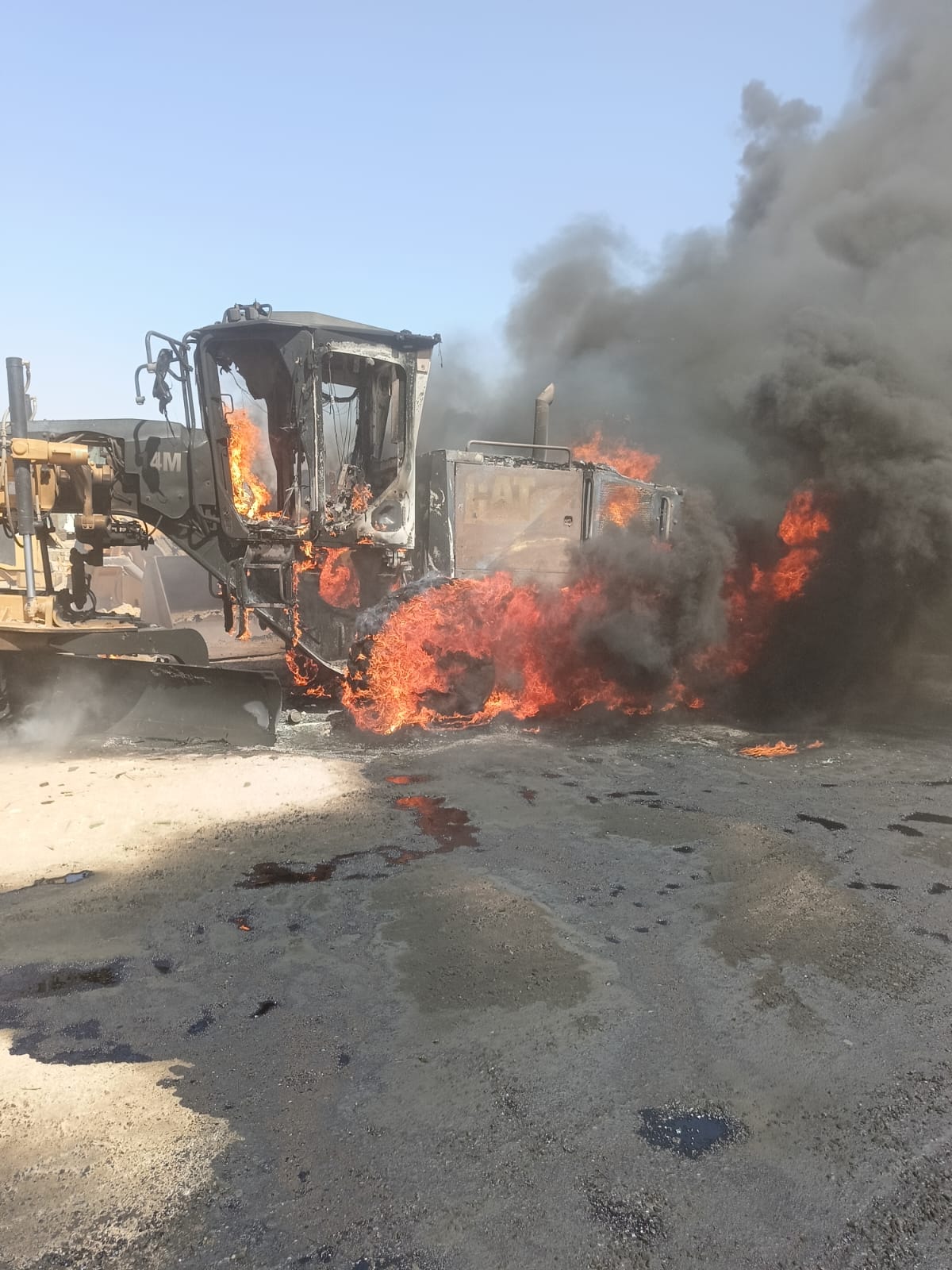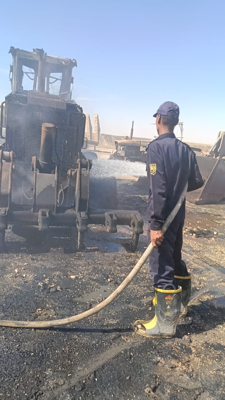 تفاصيل حريق معدات ولوادر محطة خلاطة أسفلت