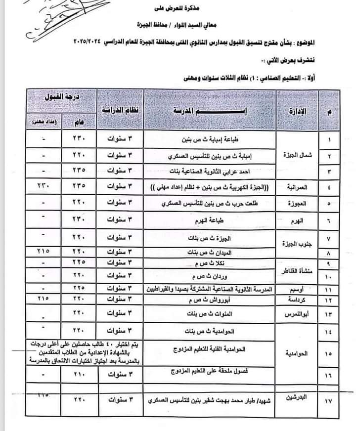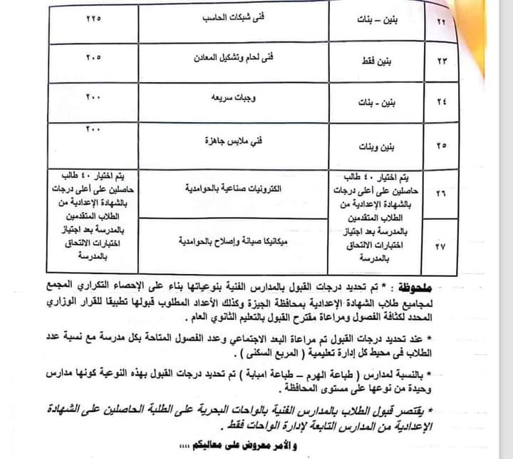 ننشر جداول تنسيق القبول بالمدارس الثانوية والفنية 2024 بالجيزة| صور