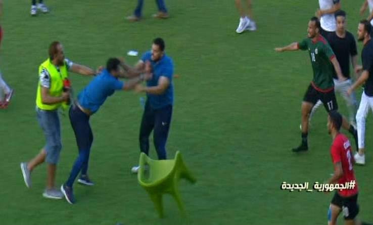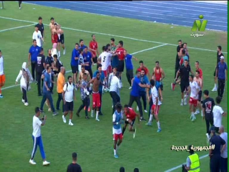 خناقة شوارع بين لاعبي سبورتنج وحرس الحدود في ترقي الممتاز.. ووالدة لاعب تتدخل لفض الشجار