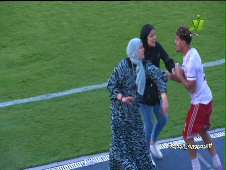 ورصدت عدسات التلفزيون الناقلة لمباراة حرس الحدود وسبورتنج في الجولة الأخيرة من دورة الترقي المؤهلة إلى الدوري الممتاز، تواجد أم احد الاعبين على أرضية ملعب المباراة للحد من الاشتباكات الواقعة في أرضية الملعب، بعد نهايتها.