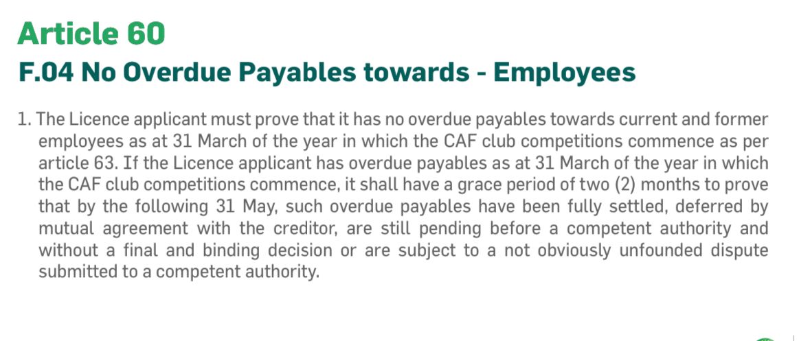 وأضاف المصدر: الزمالك يحق له تجديد رخصته الإفريقية طبقا للائحة، لأن الزمالك ليس لديه أي مديونية خاصة بـ خالد بو طيب أو غيره حتى تاريخ 31 مارس 2024 وهو الموعد المحدد في اللائحة، موضحًا أن الزمالك تلقى خطابا بـ إيقاف القيد بسبب خالد بوطيب في شهر أبريل، أي بعد الموعد المحدد، وبالتالي وطبقا للائحة يحق لـ الزمالك الحصول على الرخصة.