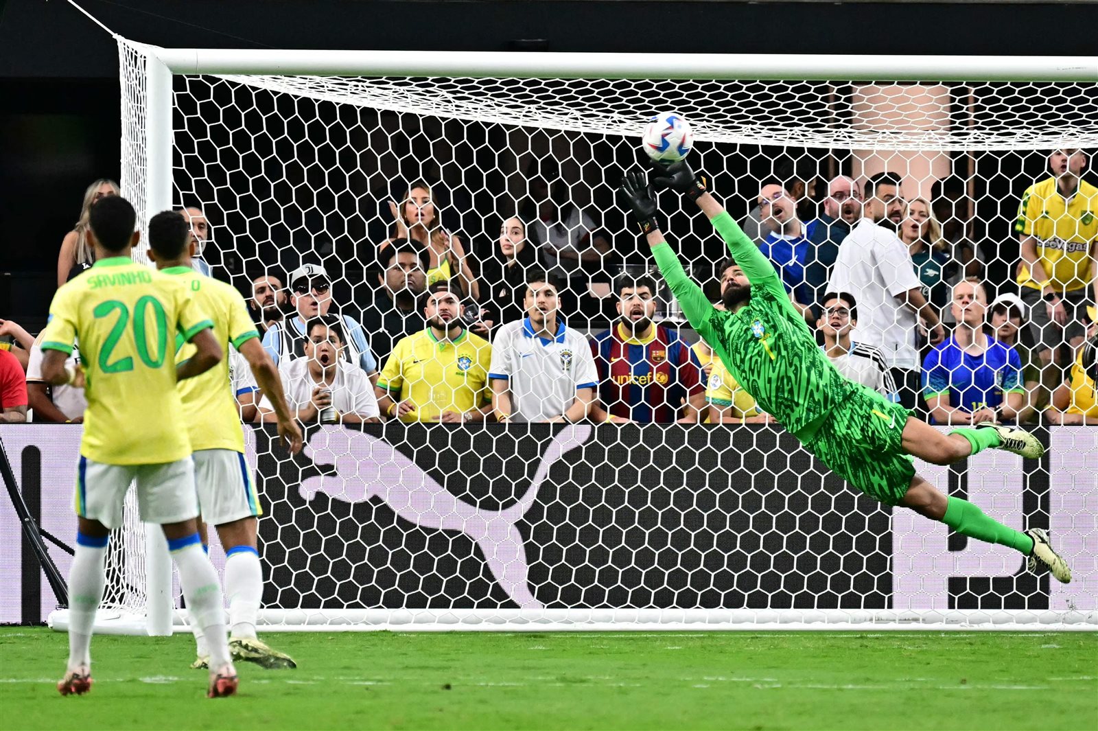 وفي الدقيقة 15 من عمر الشوط، منع أليسون الهدف الأول لصالح منتخب باراجواي بعدما تصدى لرأسية من قبل أحد اللاعبين.