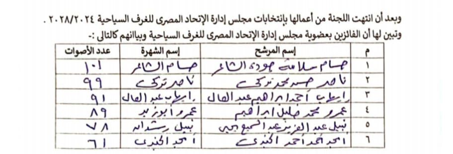ومن المقرر أن يصدر الوزير، وفقًا لأحكام القانون، قرارا خلال المدة القانونية المحددة بتعيين باقي أعضاء مجلس إدارة الاتحاد المصري للغرف السياحية ليكتمل مجلس الإدارة في تشكيله كاملًا.