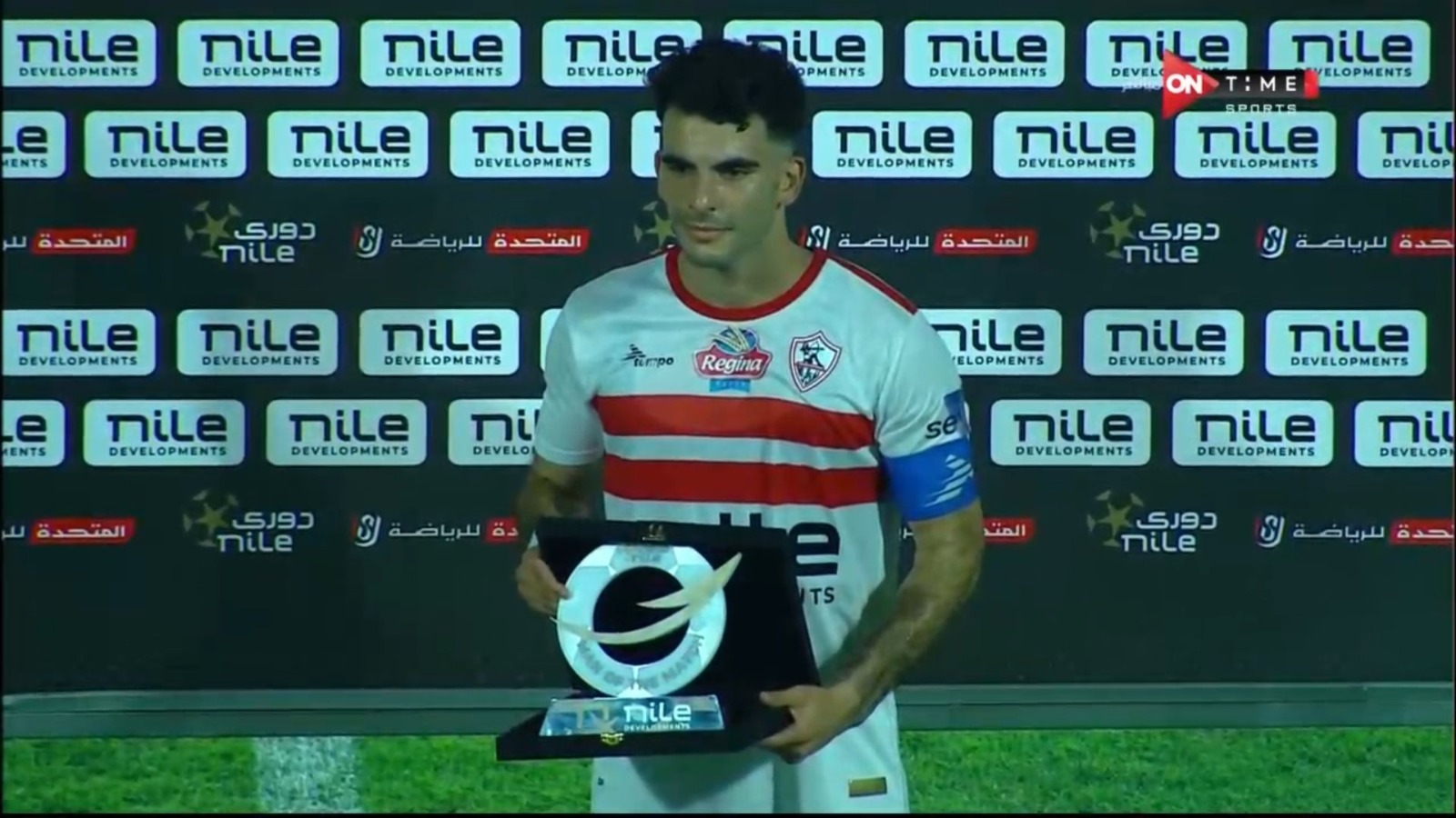وتسلم اللاعب الجائزة من مراقب المباراة في ملعب المباراة بعد انتهاء اللقاء الذي جمع بين الزمالك وسيراميكا كليوباترا بالدوري الممتاز.