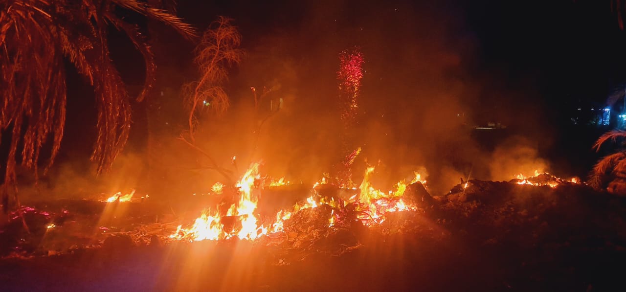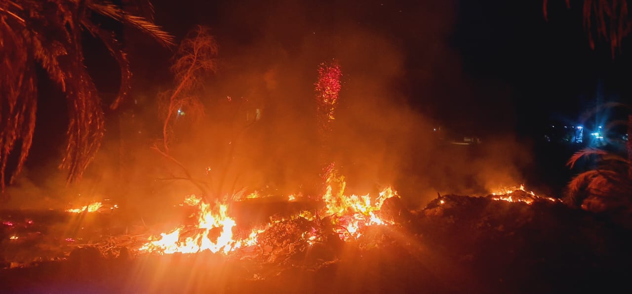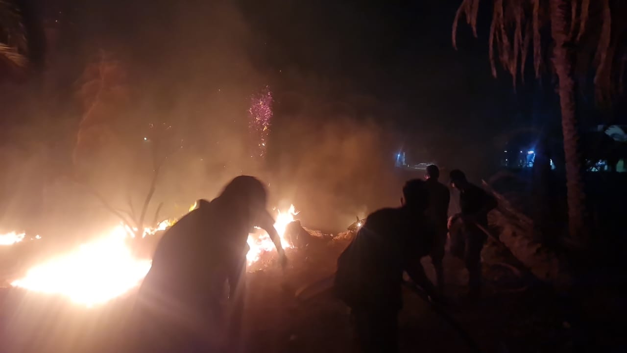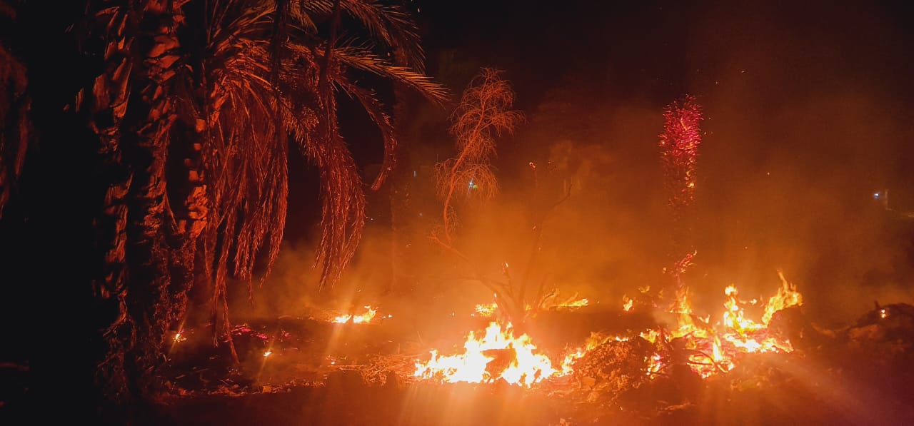 حريق كبير بمزرعة نخيل بمنطقة " عين الشيخ " في الوادي الجديد| صور