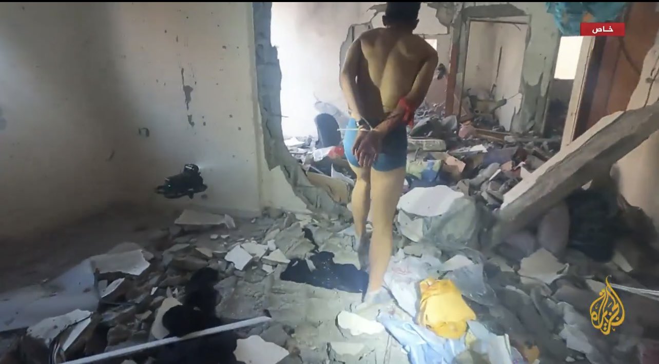 وبثت قناة الجزيرة صورة قالت إنها حصلت عليها، تُظهر استخدام الاحتلال أسرى فلسطينيين دروعا بشرية في غزة.