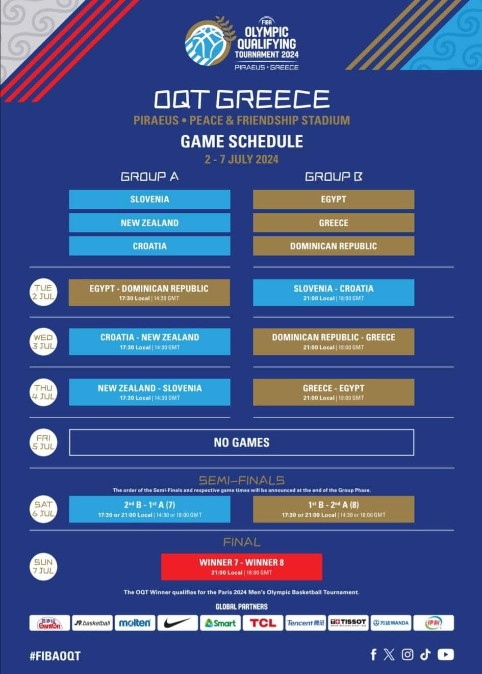 ويتأهل أول ووصيف كل مجموعة المجموعة الأولى والمجموعة الثانية لنصف النهائي الذي سيقام 6 يوليو، والفائز منهما يلعبان في النهائي يوم 7 من يوليو على أن يتأهل الفائز في النهائي للأولمبياد رسميًا، أي أنه في حال تأهل منتخب مصر كأول أو ثاني المجموعة سيلعب ضد أحد فرق المجموعة الأولى والتي تضم كل من سلوفينيا ونيوزيلندا وكرواتيا.