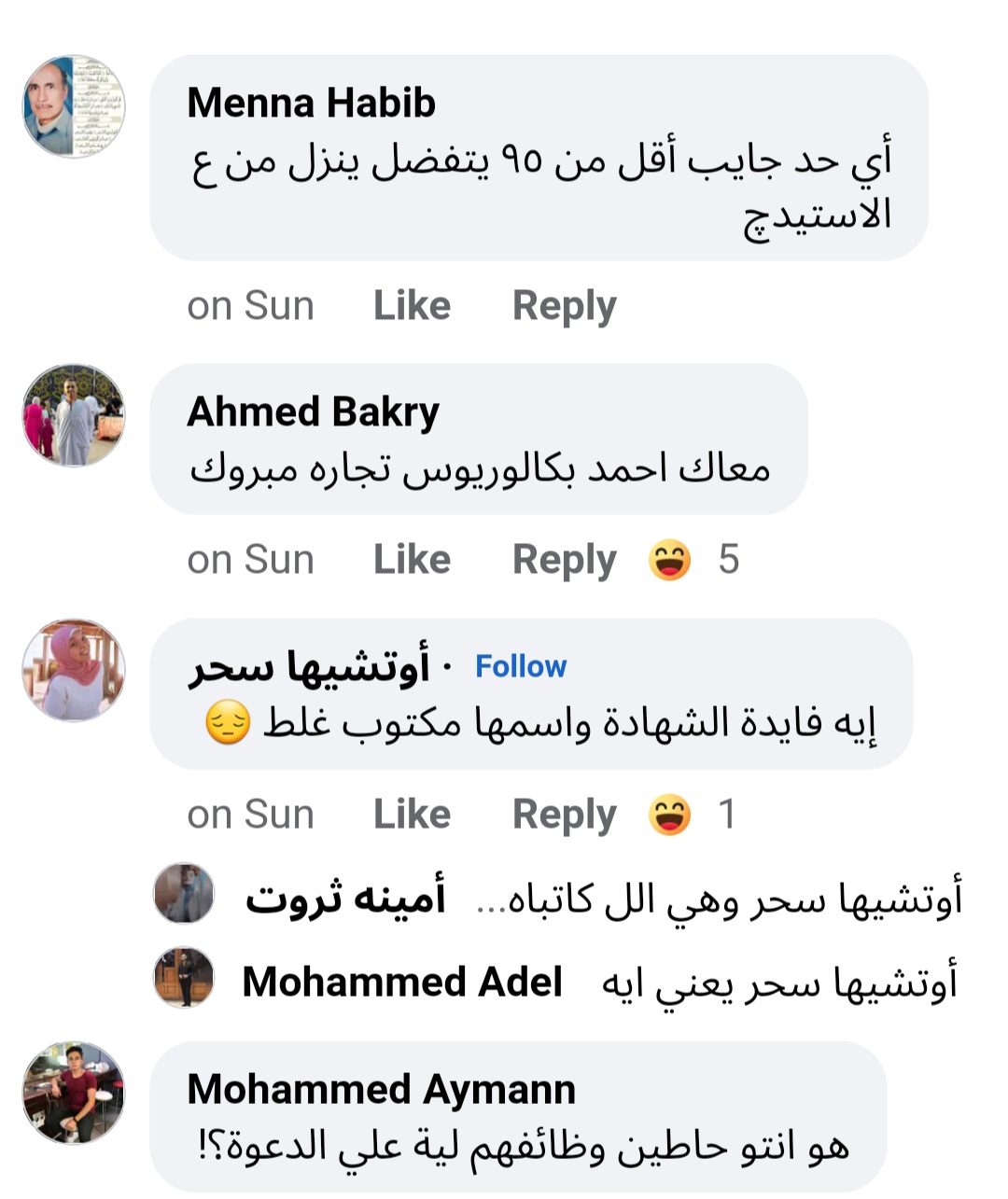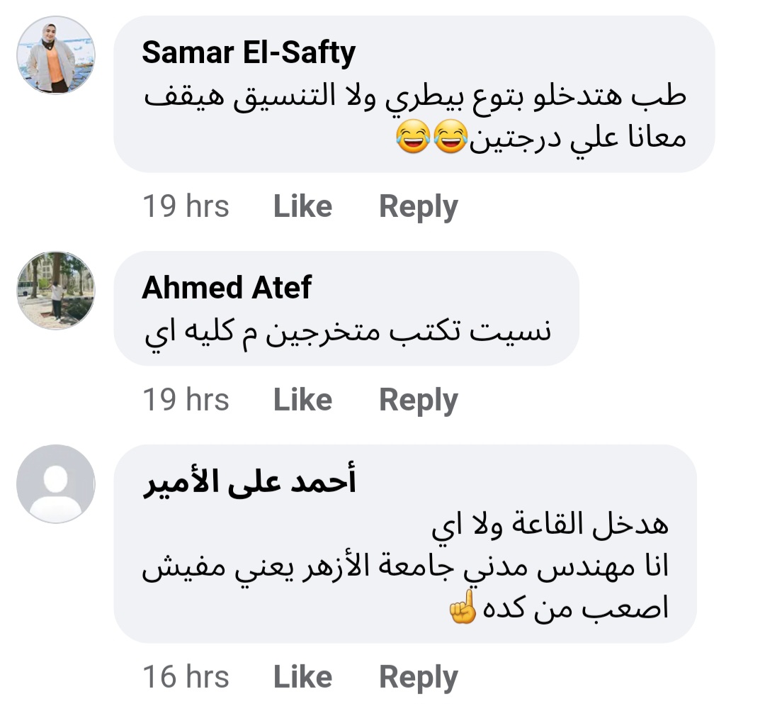 بينما عارض البعض التعليقات الهجومية على العروسين، فعلق أحدهم قائلا: أيه الفكرة من الناس اللي كتبت كومنتات بتعلق على التخصص ما طول عمرنا بنشوفها مكتوبة في الجوابات ولا هو أي كوميديا وخلاص، ولو عندكوا وجهة نظر والموضوع فعلا يضحك فهمونا وإحنا نضحك معاكم.