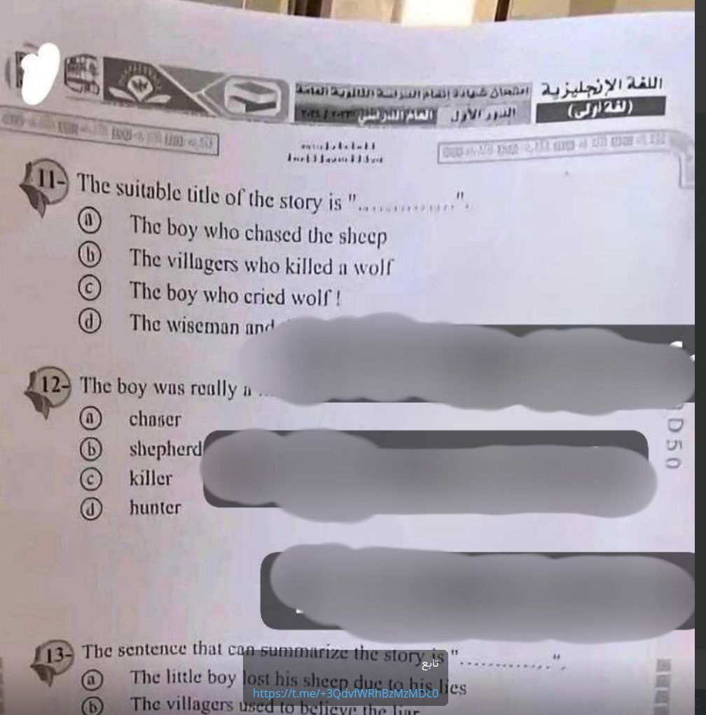 الورقة المتداولة ليس لها علاقة بامتحان الإنجليزي لـ طلاب الثانوية العامة