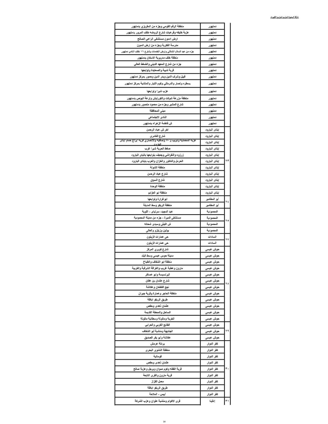 مواعيد قطع الكهرباء في البحيرة اعتبارًا من يوليو 2024