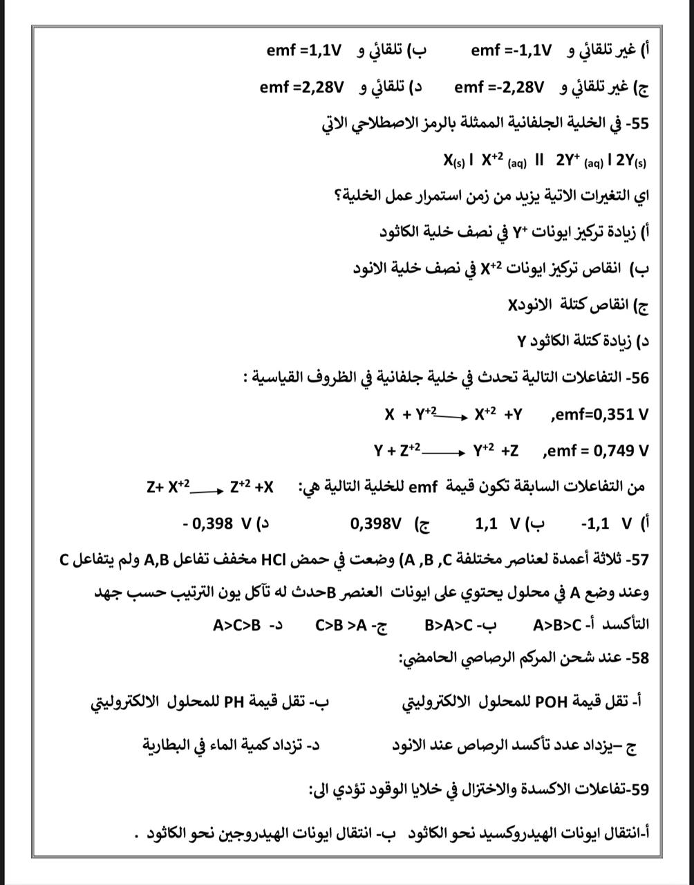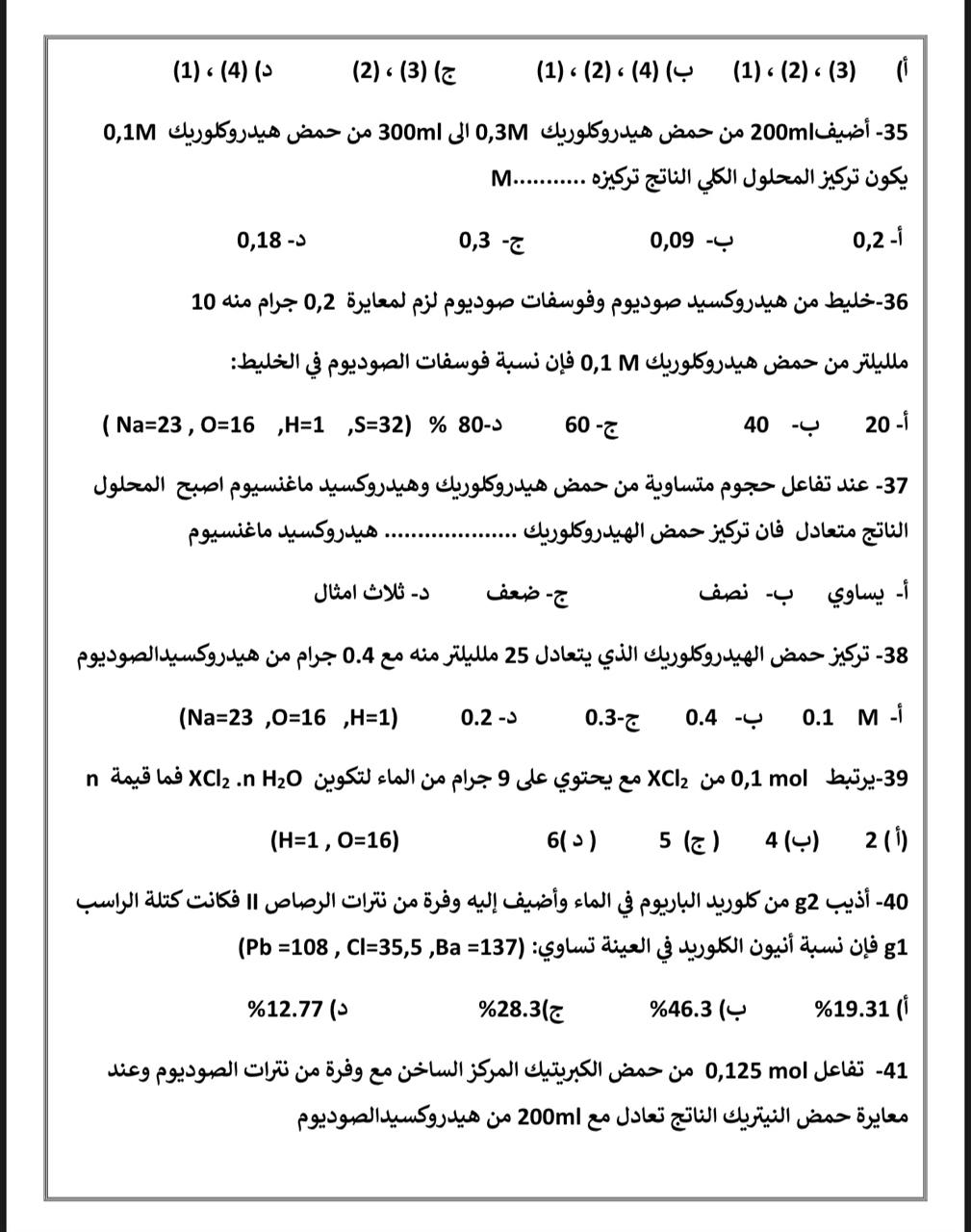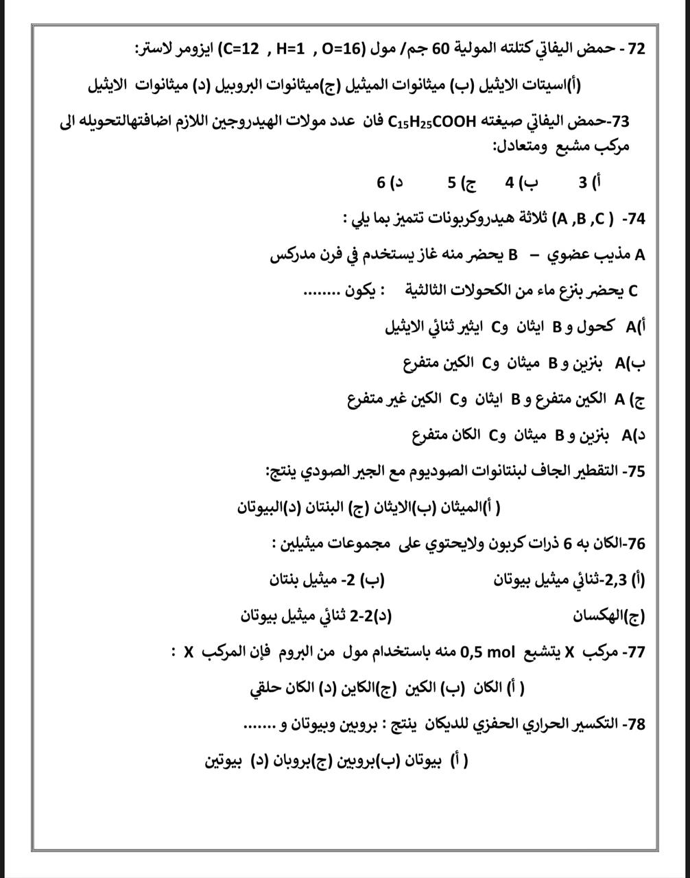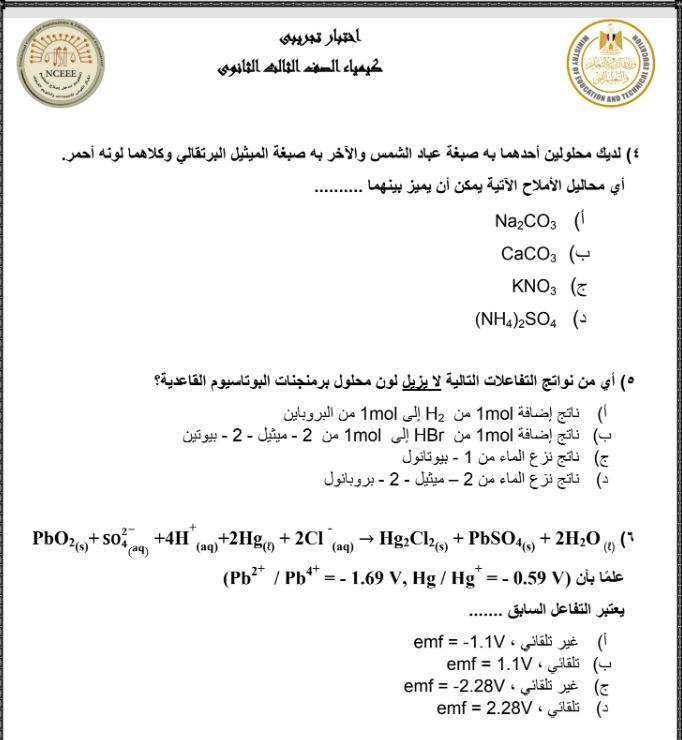 الامتحانات الاسترشادية السابقة في مادة الكيمياء
