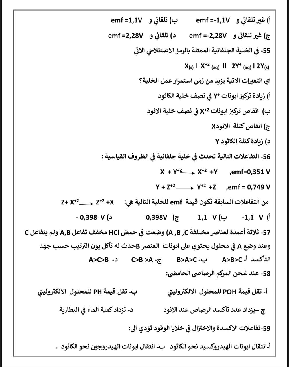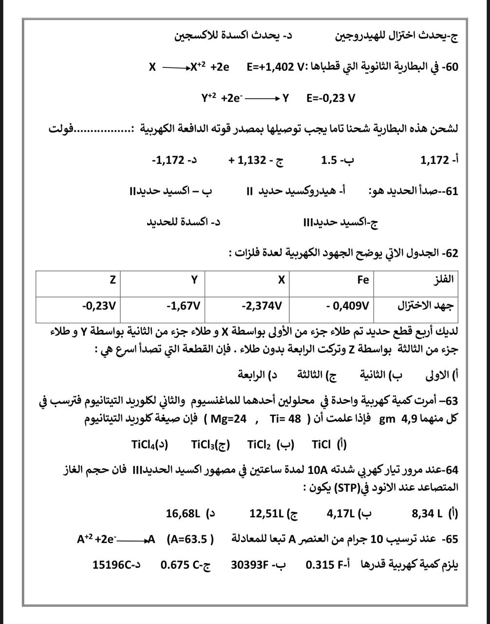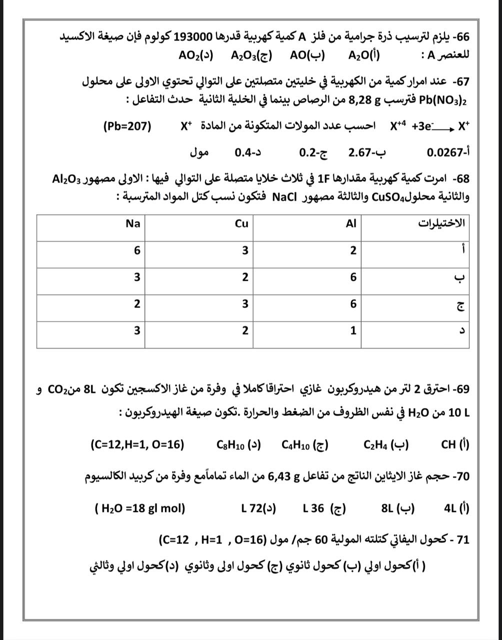 الامتحانات الاسترشادية السابقة في مادة الكيمياء