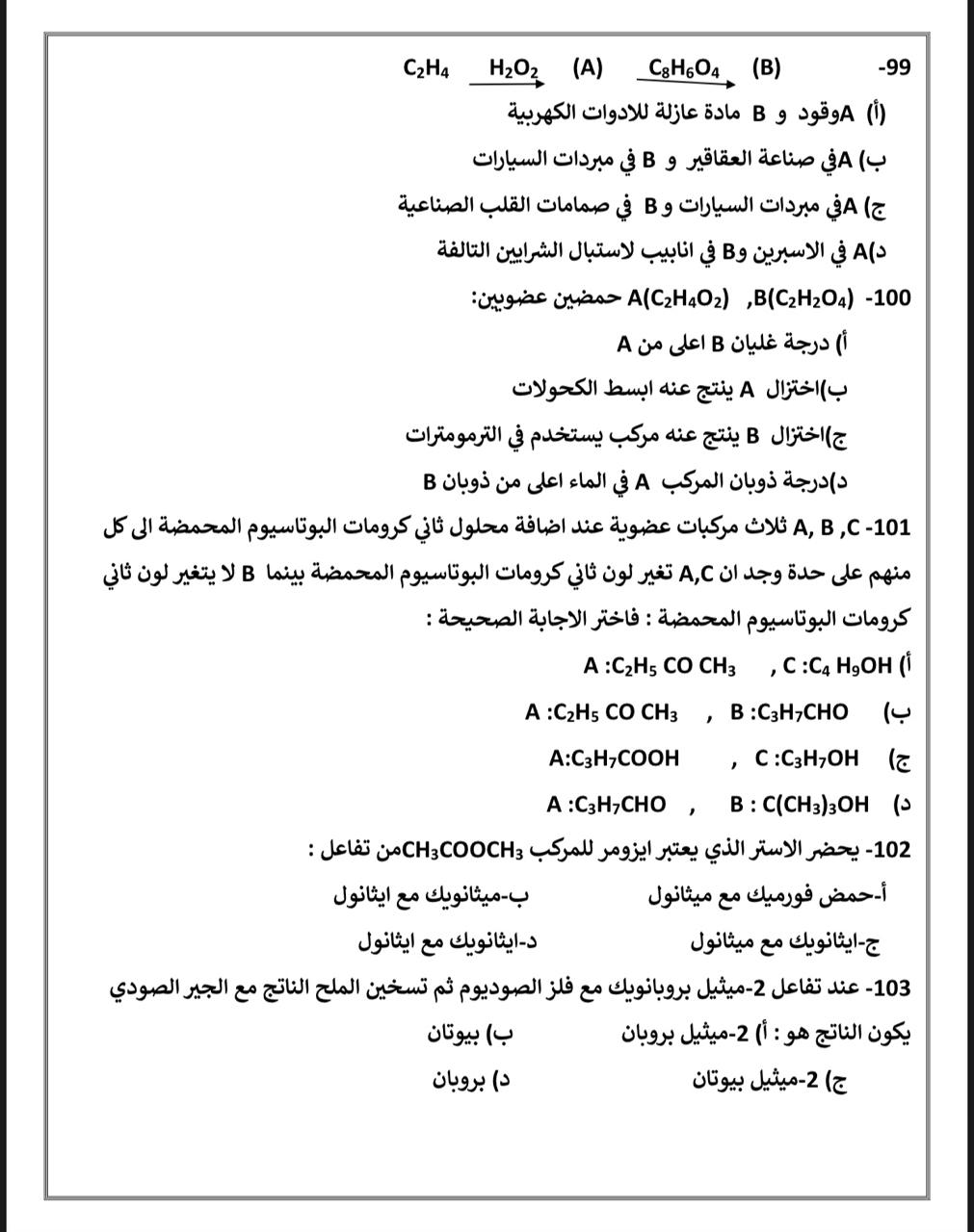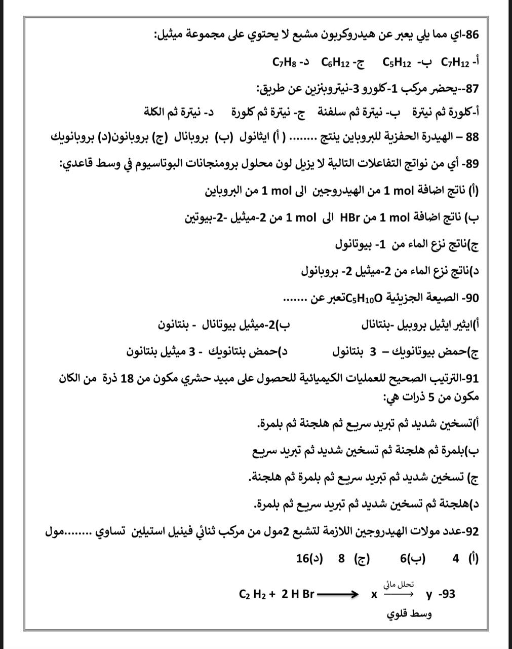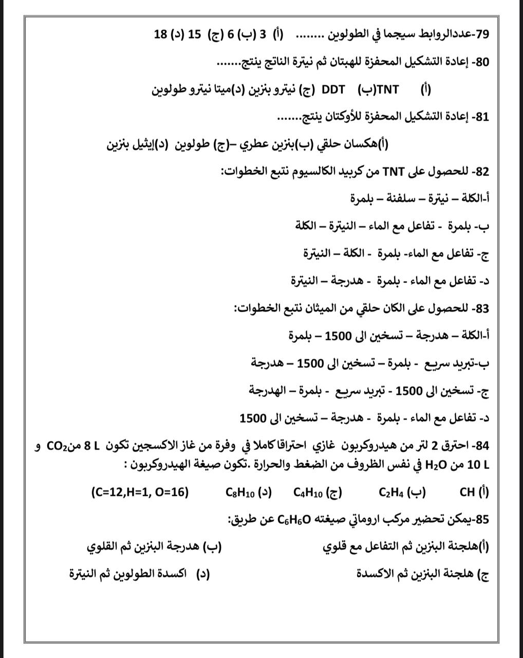الأسئلة المتوقعة في مادة الكيمياء لطلاب الثانوية العامة 2024