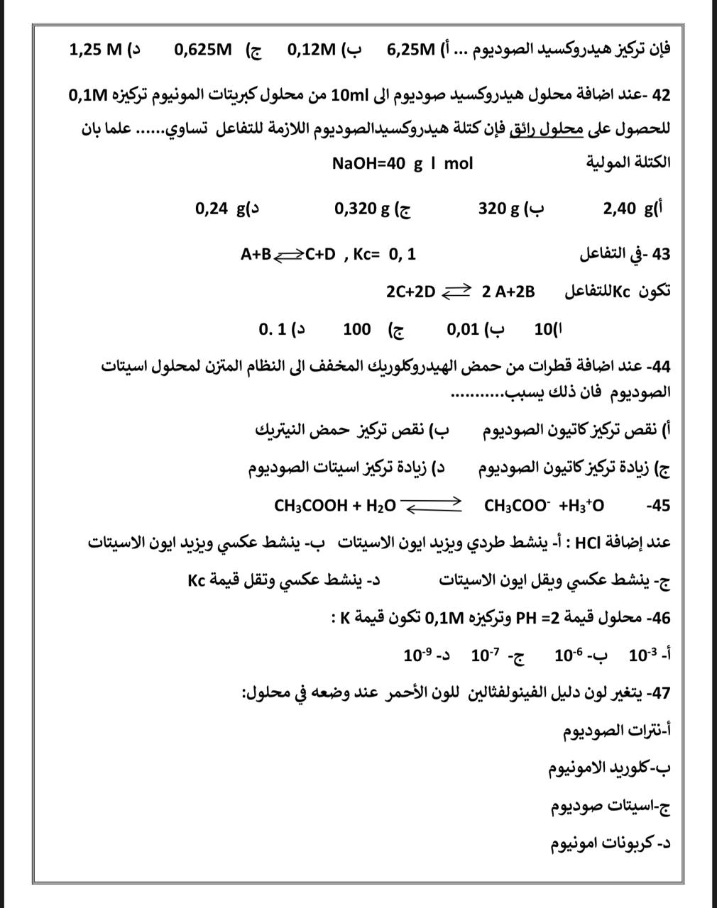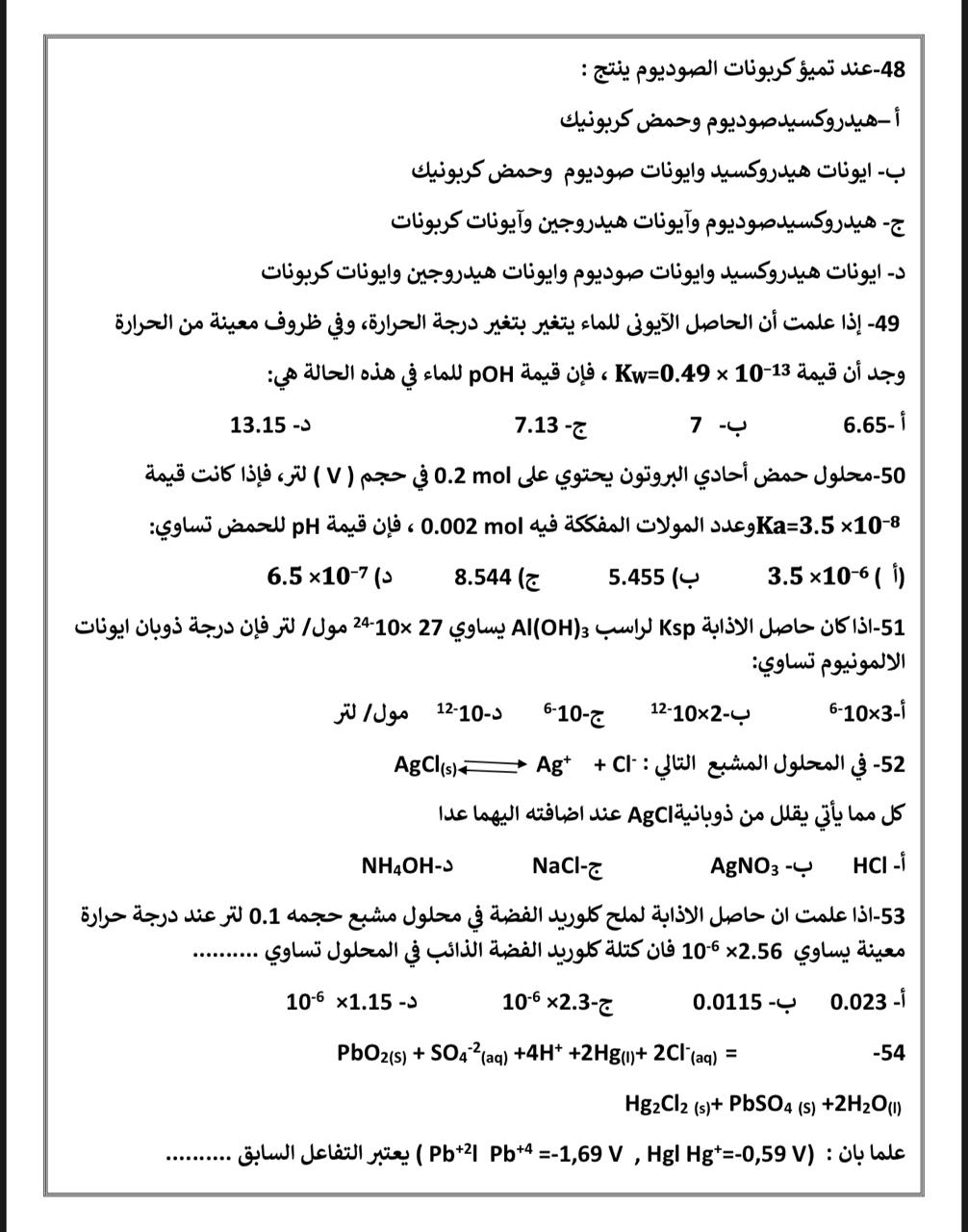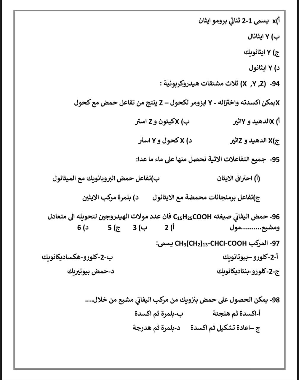 الأسئلة المتوقعة في مادة الكيمياء لطلاب الثانوية العامة 2024