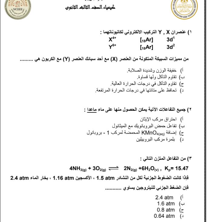 يختار الطلاب حل نماذج الامتحانات في مادة الكيمياء 2024 بشكل كامل، من أجل محاكاة الاختبار النهائي، خاصة أن النموذج يتضمن التعدد في نوعية الأسئلة، لذا يختار كل طالب في تخصيص عدد من النماذج لحل قبل الاختبار النهائي، والتي جاءت كالتالي:
