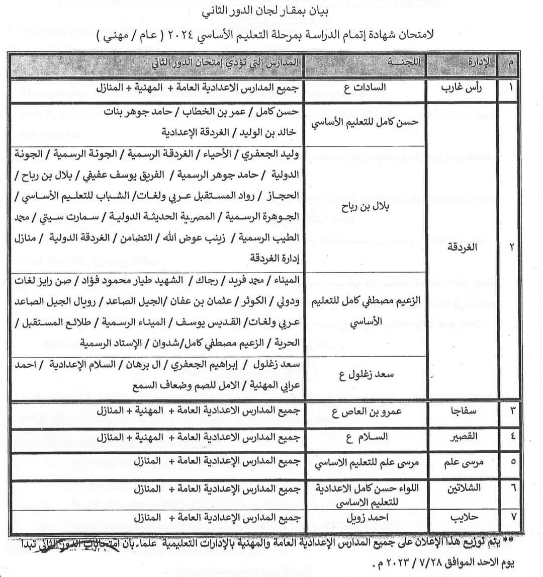 أعلنت مديرية التربية والتعليم بالبحر الأحمر، عن تخصيص 10 لجان امتحانية بمختلف مدن المحافظة لأداء امتحانات الدور الثاني للشهادة الإعدادية.