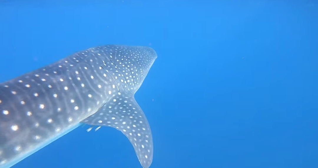 القرش الحوت من أنواع القرش المسالمة مع الصيادين رغم حجمه الكبير ولا يمتلك اى أسنان، لذلك لا يشكل خطرًا على البشر، ويتميز بشكله الجميل الجذاب بلون جلده الأزرق المزين بصفوف منتظمة من النقاط البيضاء.