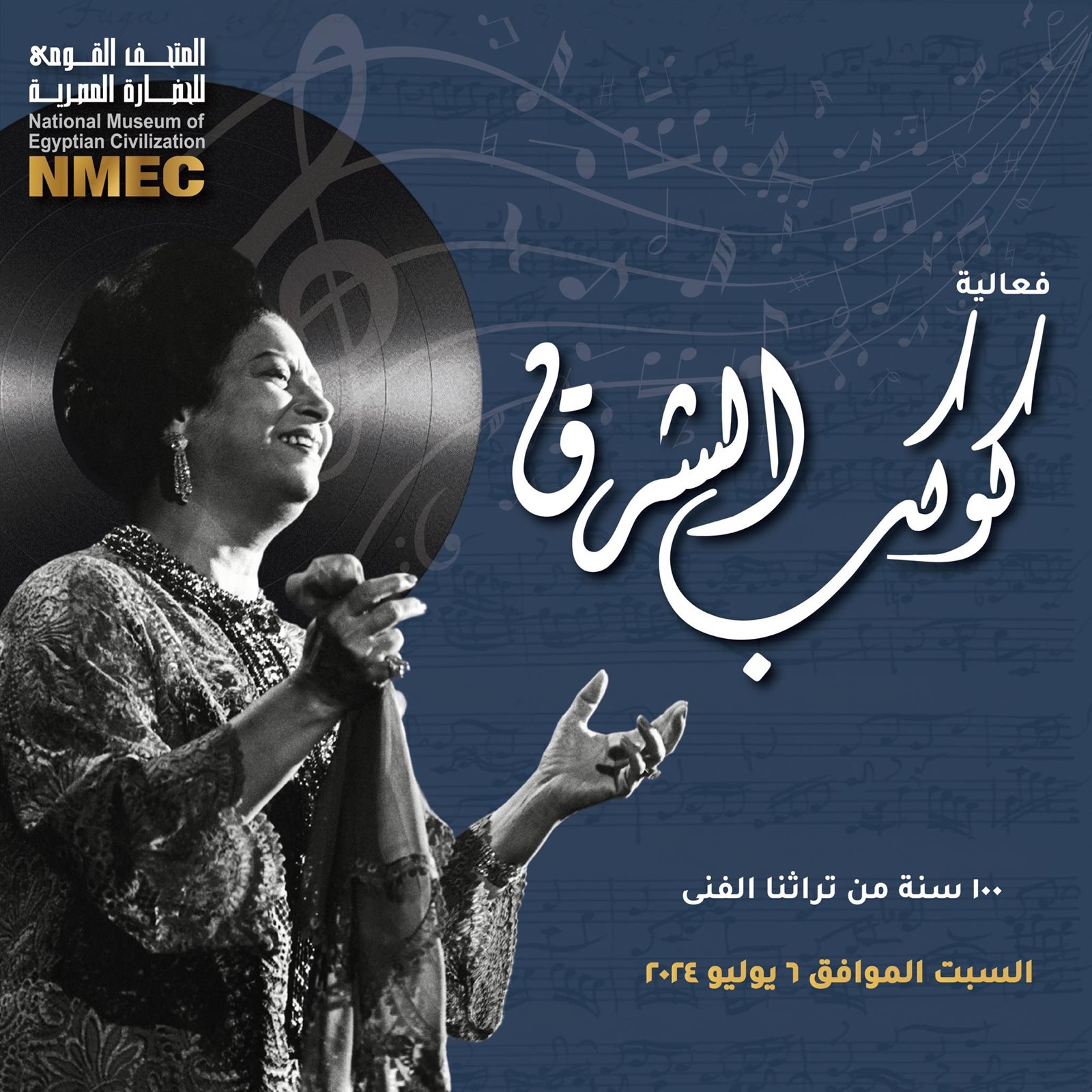 في إطار الاستراتيجية التي يتبناها المتحف القومي للحضارة المصرية، ضمن نشاطه الثقافي لإلقاء الضوء على التراث الثقافي والفنون التراثية والترويج لها، يتشرف المتحف القومي بتنظيم فعالية تراثية ثقافية، للاحتفال بمئوية بداية سيدة الغناء العربي أم كلثوم للغناء في أولى حفلاتها الغنائية، وإلقاء الضوء على أحد أهم معالم تراثنا الفني.