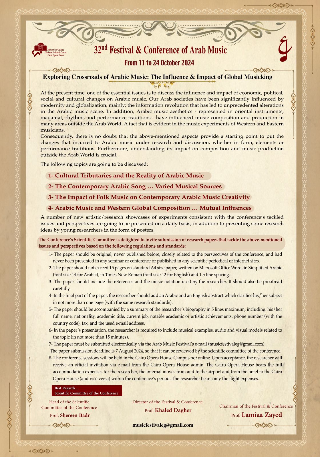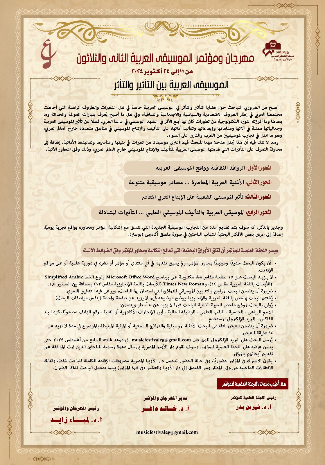 المحاور البحثية لمؤتمر مهرجان الموسيقى العربية في دورته 32| مستند