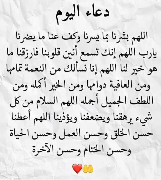 - اللهم اجعل قلوبنا مملؤة بحبك وألسنتنا رطبة بذكرك وأعنا على ذكرك وشكرك وحسن عبادتك.