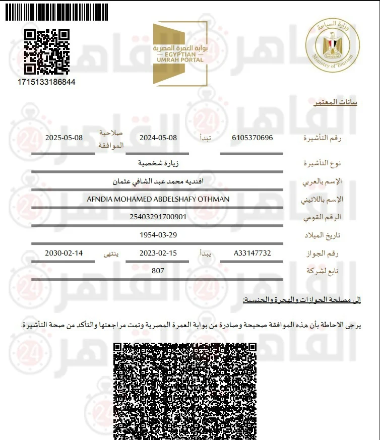 تأشيرة الحاجة أفندية تكشف مفاجأة: نجلاها رتبا لسفرها لأداء العمرة وليس للحج| مستندات