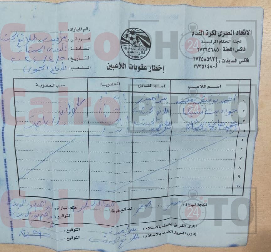حصل القاهرة 24 على إخطار الاتحاد المصري لكرة القدم بشأن البطاقات الصفراء في مباراة بيراميدز وطلائع الجيش، يوم 5 أبريل الماضي.