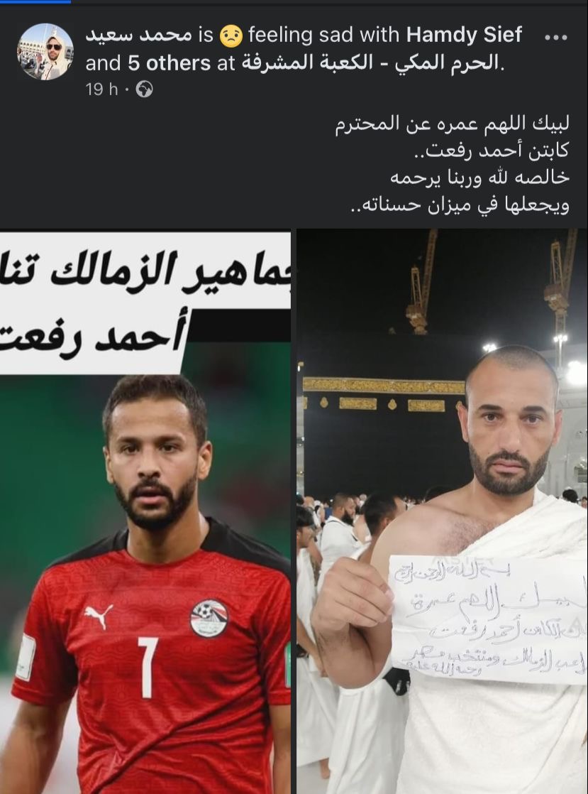 شاب مصري يؤدي عمرة على روح أحمد رفعت: لاعب خلوق واتظلم