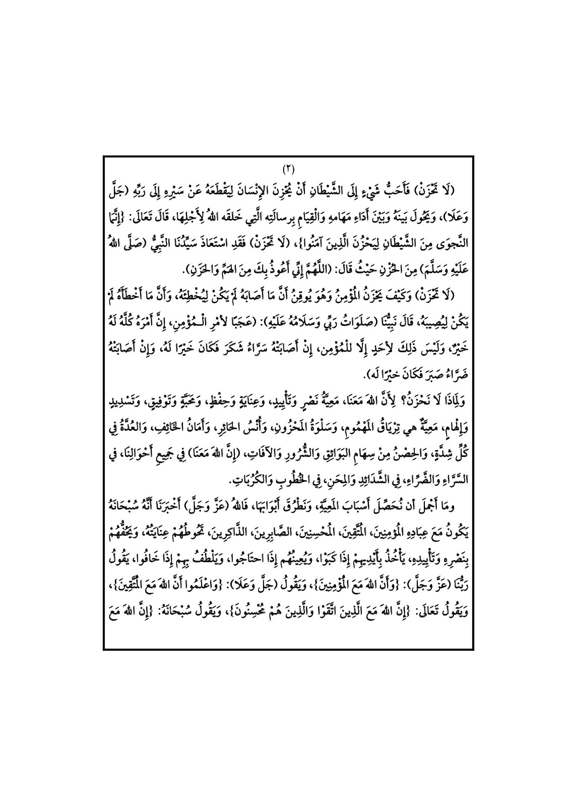 كما سيتم الاستشهاد بالأحاديث النبوية الشريفة التي تؤكد على أهمية التفاؤل والابتعاد عن الحزن، ومنها: