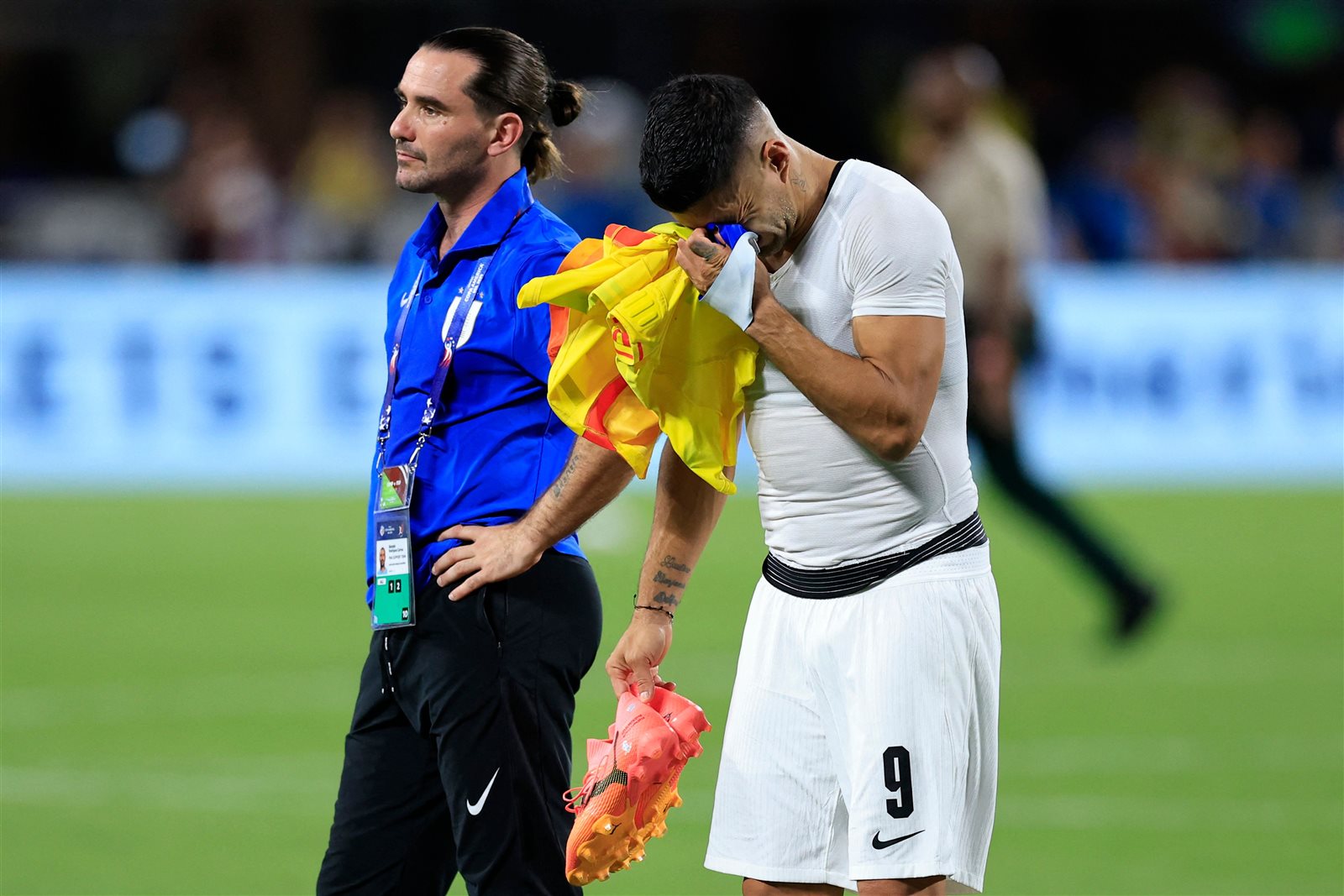 في المقابل، ظهر الحزن والبكاء الشديد على وجوه لاعبي منتخب أوروجواي بعد الخسارة المؤلمة من منتخب كولومبيا في نصف نهائي البطولة، خاصةً لويس سواريز.