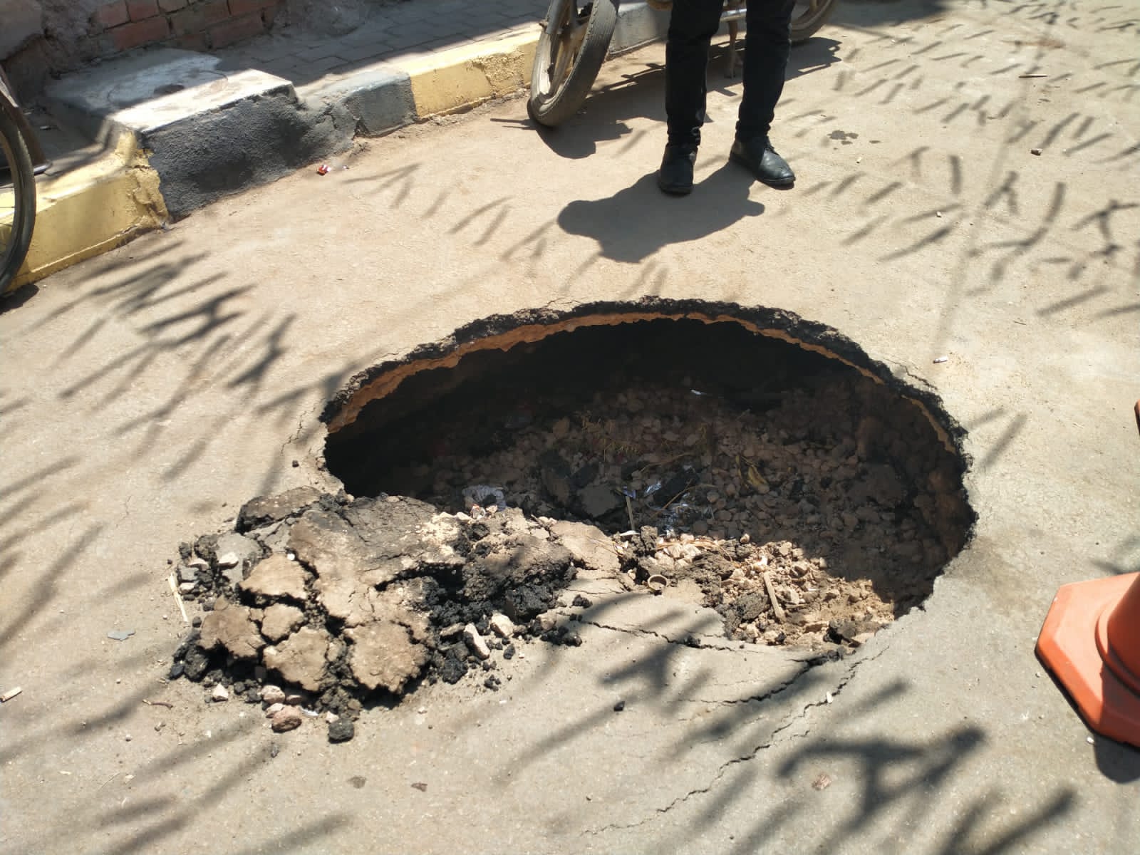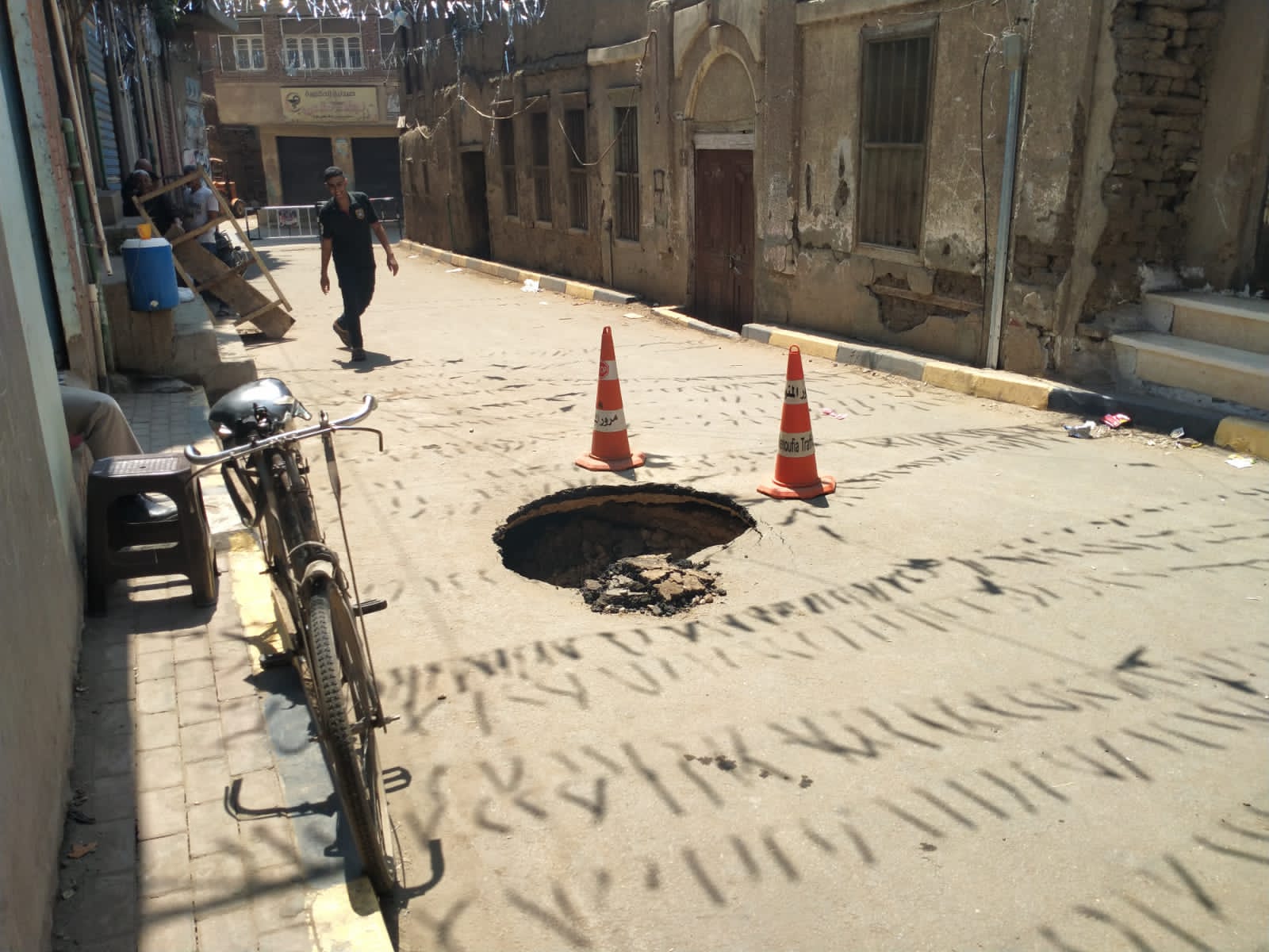 وعلى الفور أبلغ الأهالي مجلس مدينة الشهداء والتي دفعت بلجنة من المجلس للمعاينة، والتي رأت أن تلك التصدعات والهبوط أكبر من أن يكون سببه انفجار ماسورة مياه، واستدعت قوة أمنية من الشرطة لاتخاذ الإجراءات القانونية والتحقيق في السبب، خشية وجود سبب جنائي بحفر غير شرعي أو التنقيب على آثار.