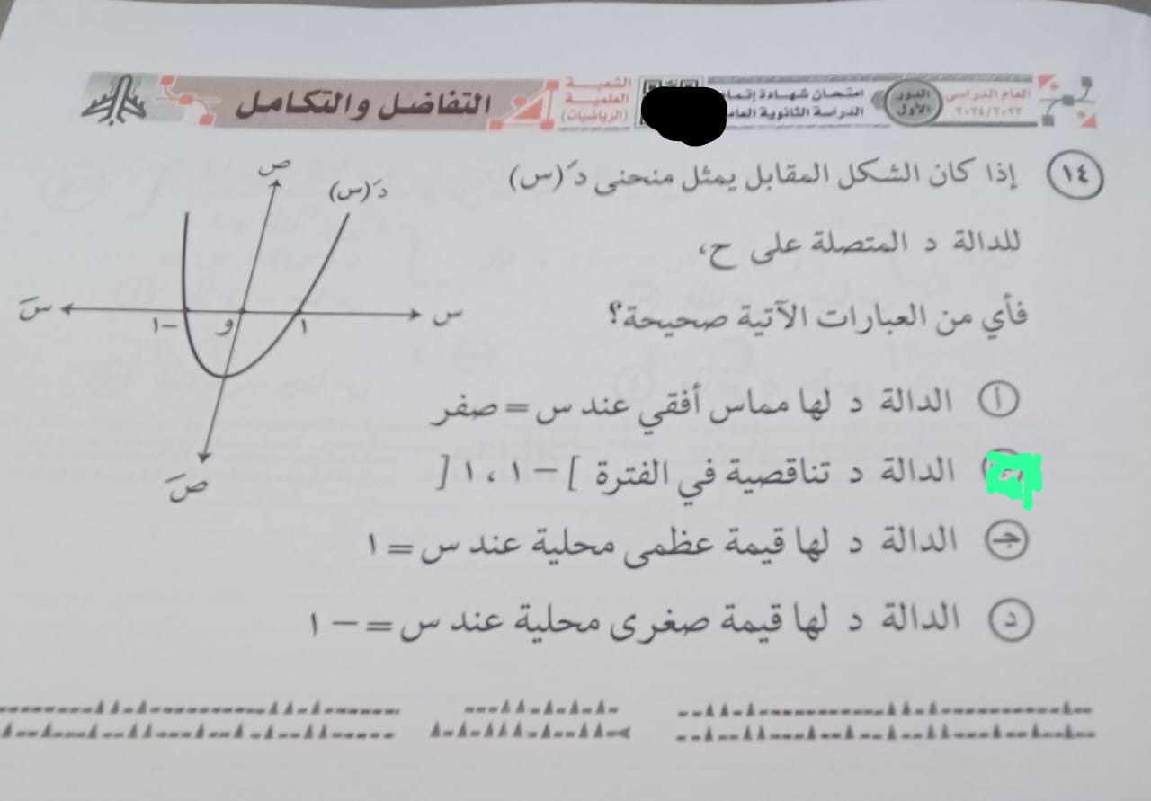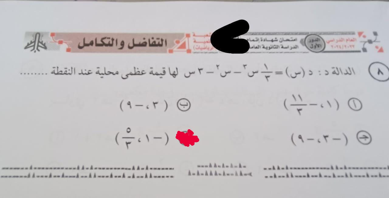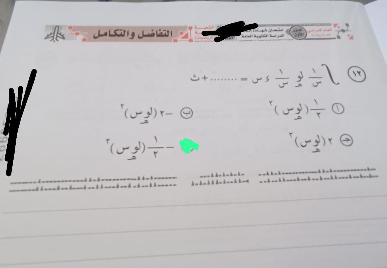 حل امتحان التفاضل والتكامل 2024 لـ طلاب الثانوية العامة