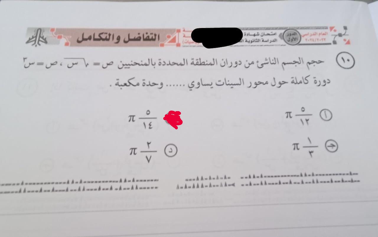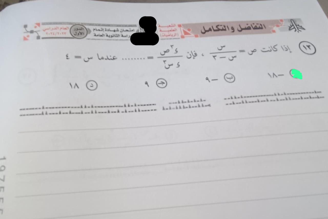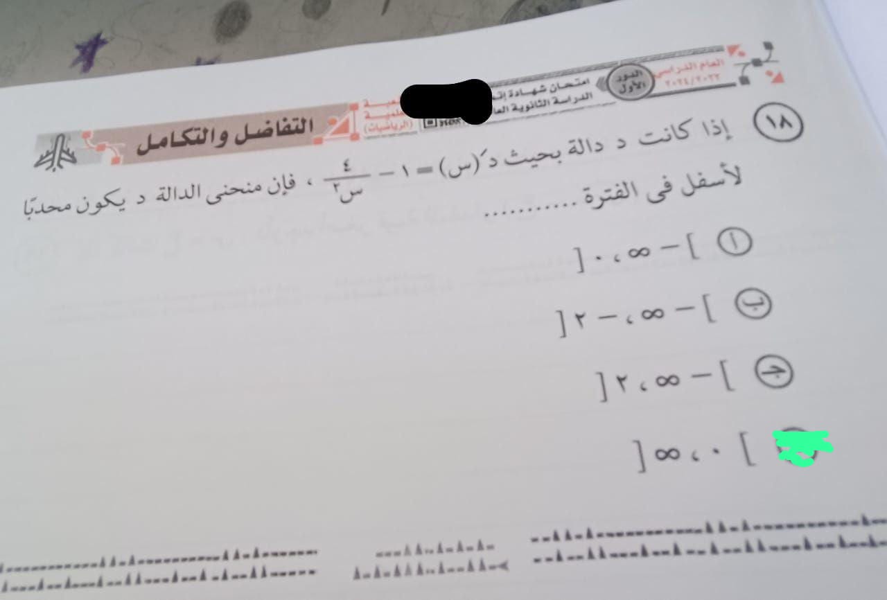 حل امتحان التفاضل والتكامل 2024 لـ طلاب الثانوية العامة