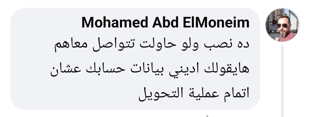 وعلق آخر: دا نصب ولو حاولت تتواصل معاهم ها يقولك إديني بيانات حسابك عشان إتمام عملية التحويل.