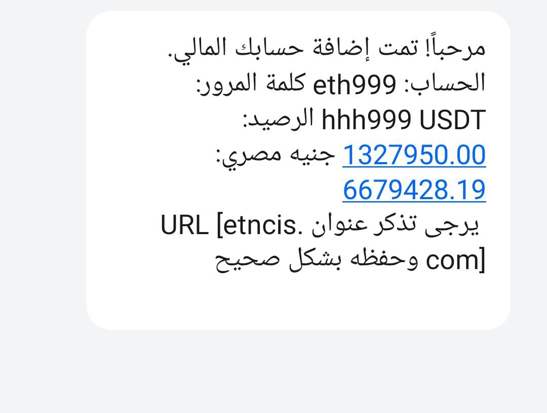 رسالة وهمية للنصب على المواطنين لسرقة أموالهم
