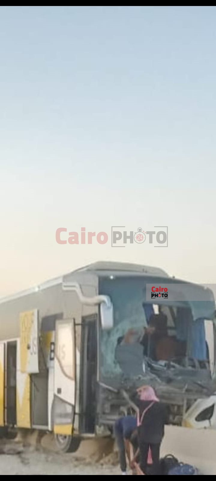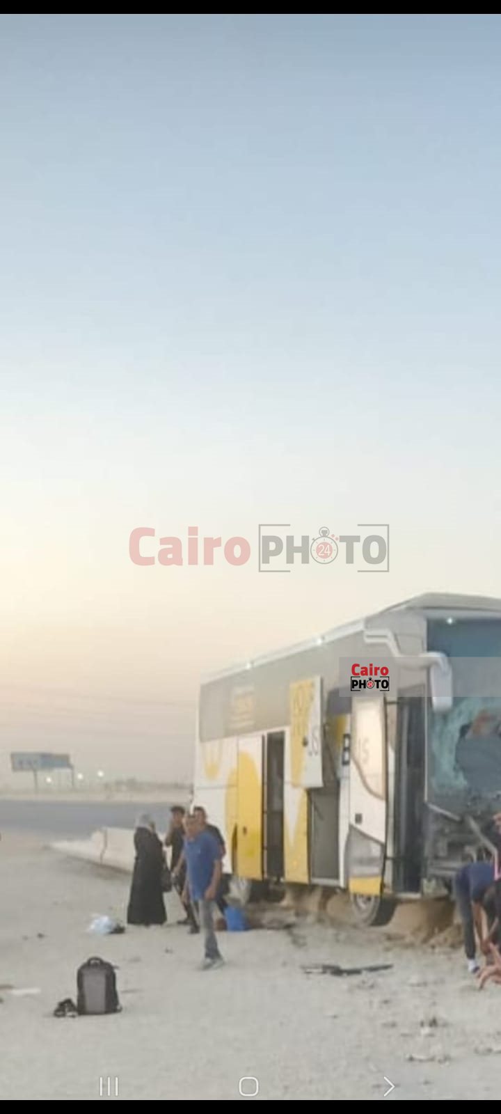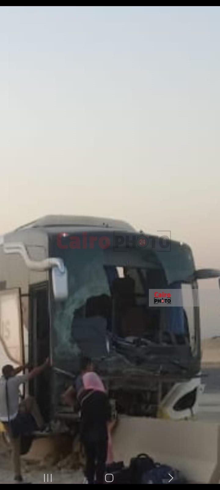 وحصل القاهرة 24 على الصور الأولى من موقع الحادث، التي تظهر آثار حطام وتهشم الأتوبيس بسبب الحادث، كما تظهر لحظة إنقاذ بعض الركاب لعدد من المصابين.