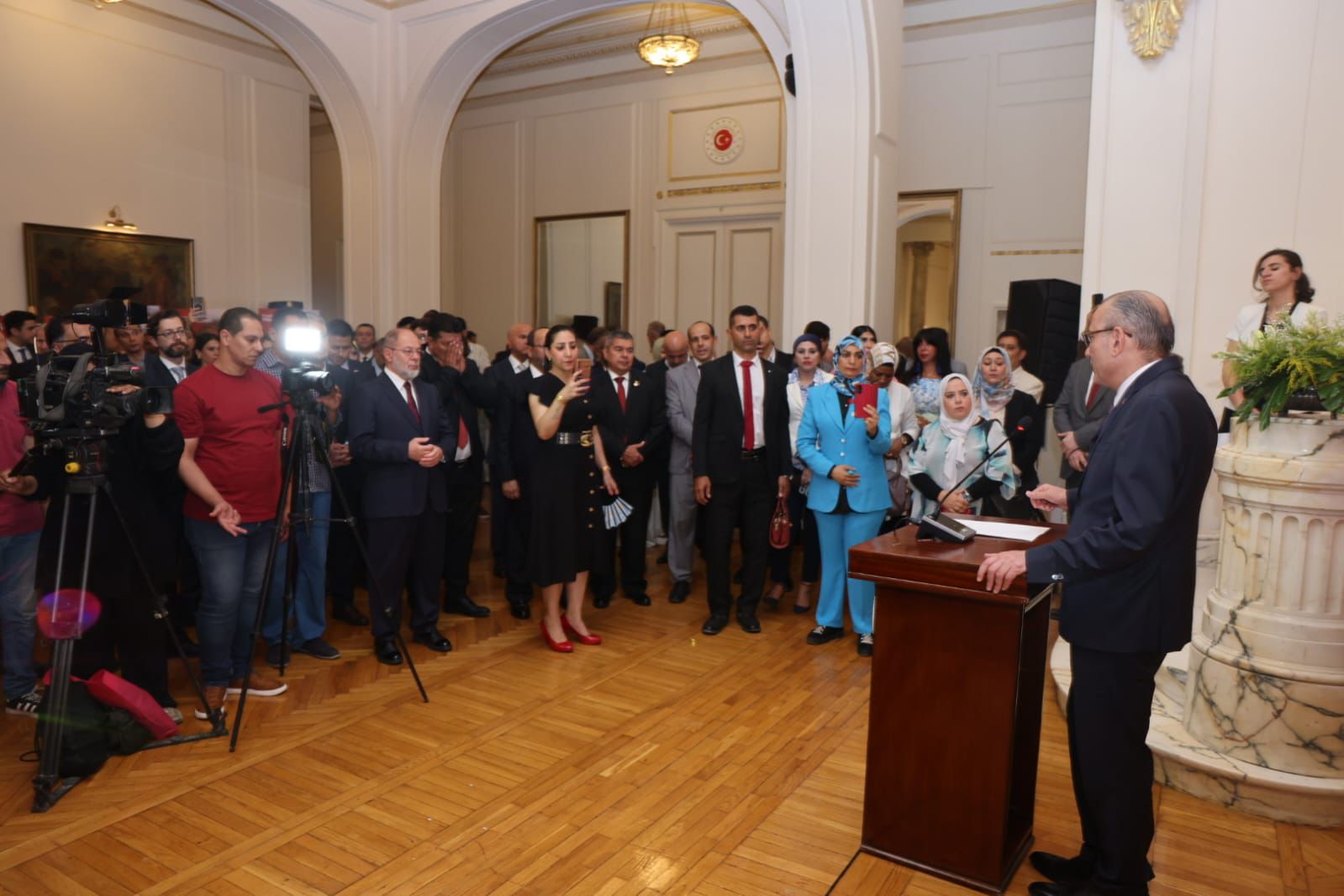 وفي كلمته، قال السفير التركي بالقاهرة صالح موطلو شن، إن تركيا بمقاومتها لمحاولة انقلاب 15 يوليو التي قام بها خونة يرتدون الزي العسكري والمنتسبون إلى منظمة فتح الله كولن الإرهابية، قد ساهمت في نضج وتعزيز ديمقراطيتها وجعلت إرادة الشعب مهيمنة بشكل مطلق في إدارة الدولة والبلاد.