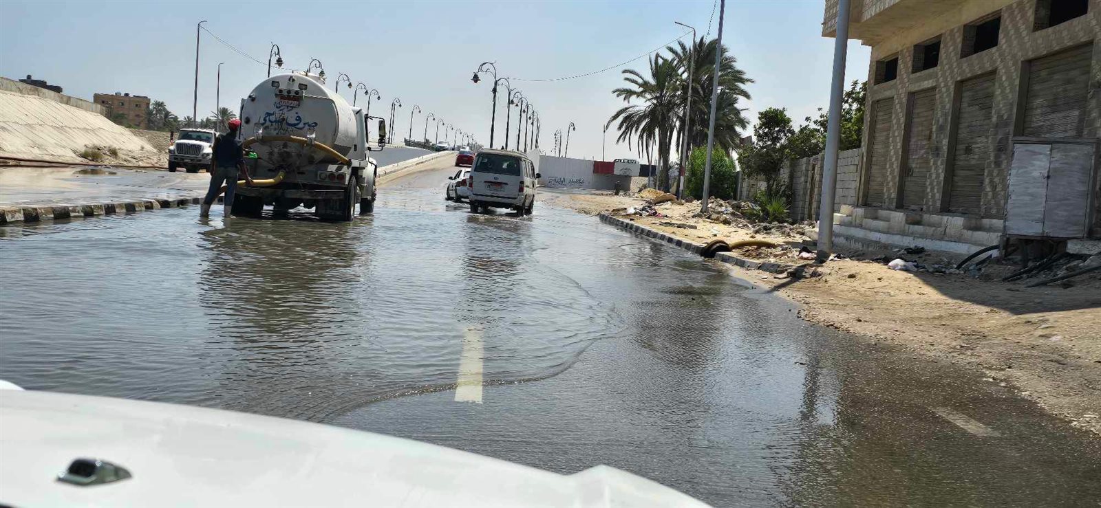 تسبب تعطل محطة الصرف الصحي بمدينة العريش، في غرق منطقة جسر الوادي، وتعطل جزئي لحركة السير.