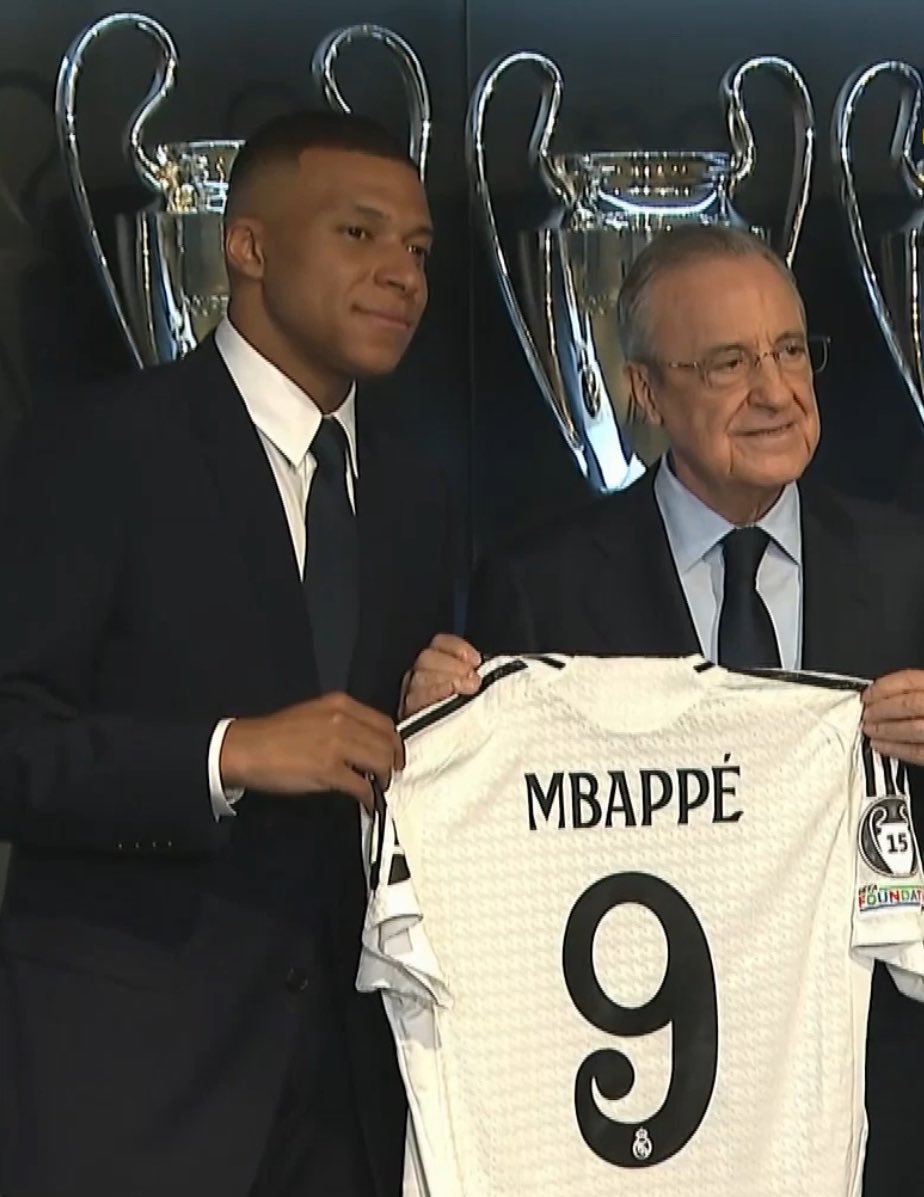 وأظهرت الصور المنتشرة عبر مواقع التواصل الاجتماعي اللاعب الفرنسي كيليان مبابي بعد التوقيع على عقود انضمامه إلى فريق ريال مدريد.