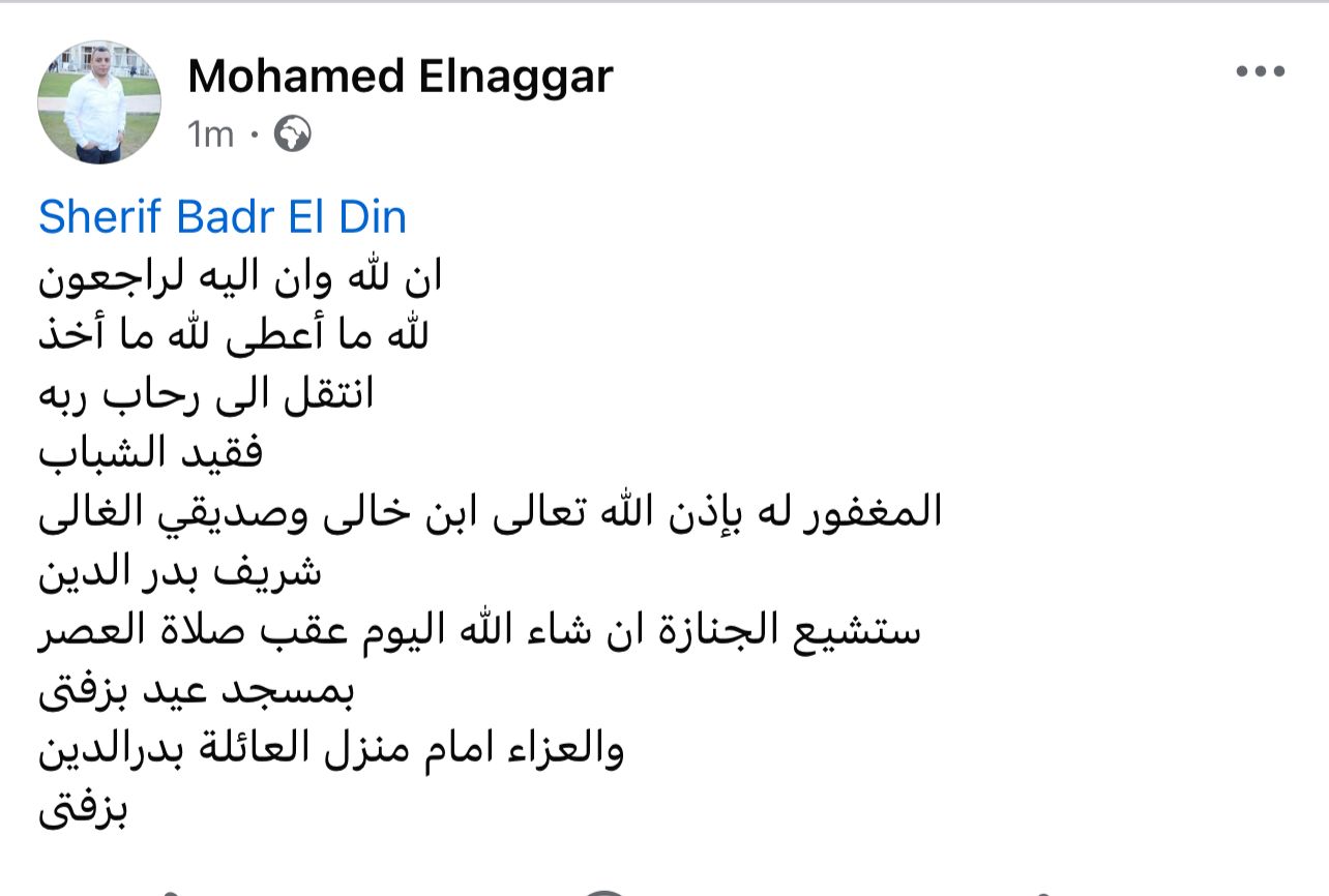 ومن المقرر أن تقام صلاة الجنازة اليوم الأربعاء الموافق 17 يوليو عقب صلاة العصر بمسجد عيد بمركز زفتى في محافظة الغريبة، وأيضًا سيقام العزاء أمام منزل العائلة بزفتى.