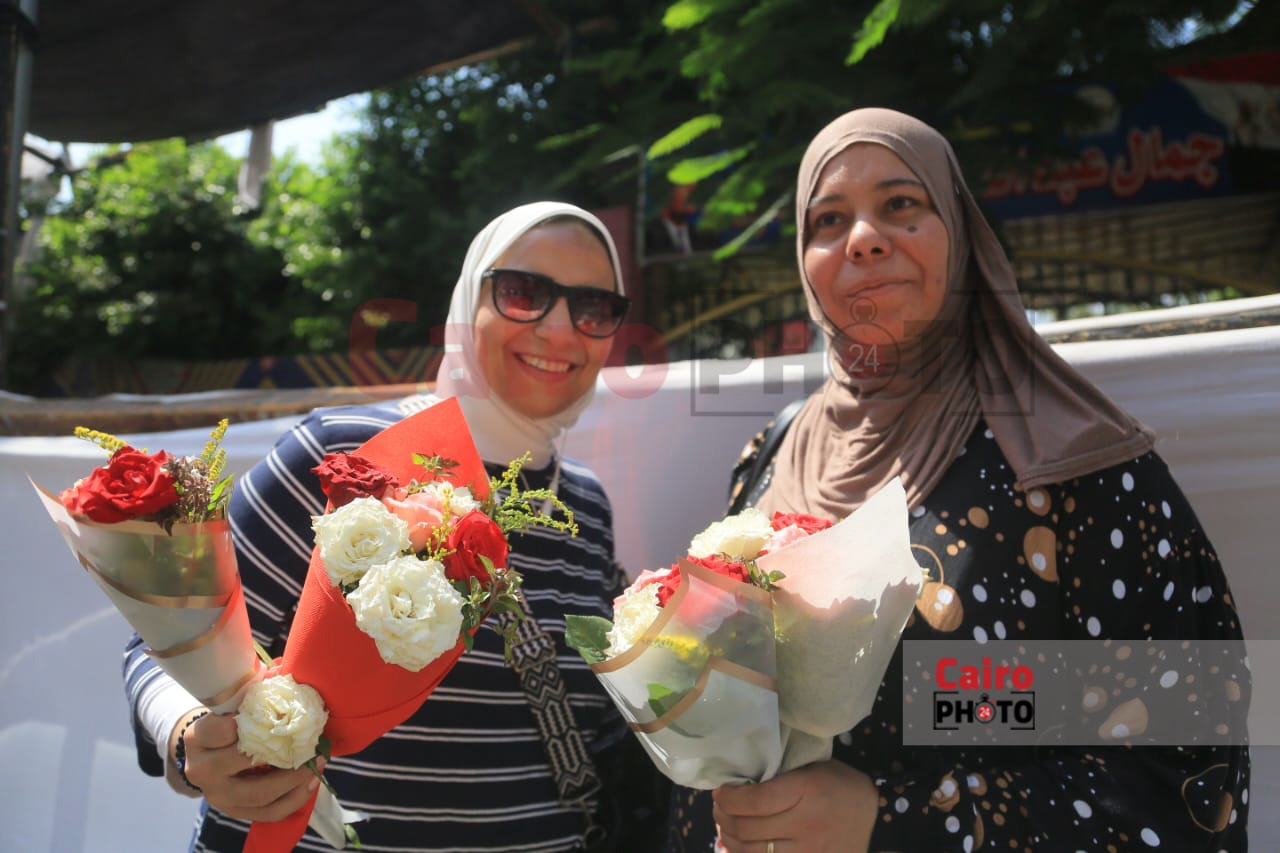 الأم بطلة الحكاية.. أولياء الأمور ينتظرون أبنائهم في آخر امتحانات الثانوية العامة بالورود