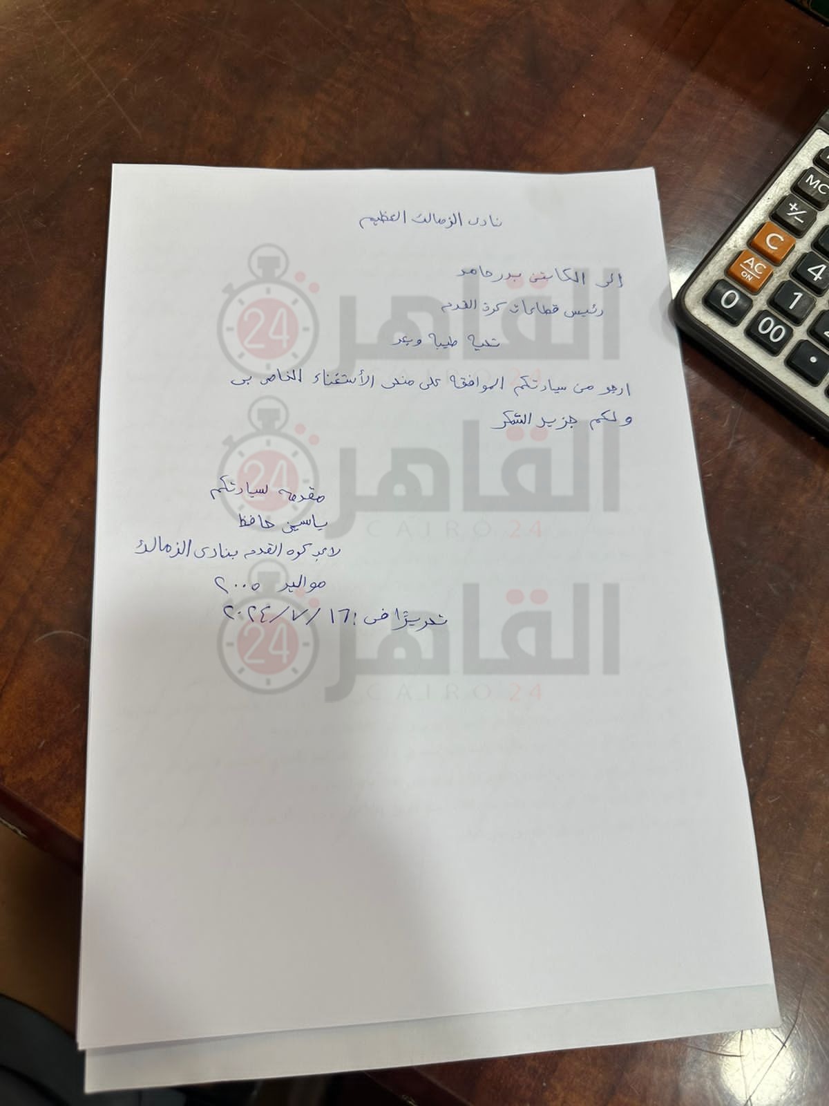 وقام اللاعب بكتابة الورقة بخط يده بعدما طلب منه مسؤولي الزمالك أن يكتبه ويقدمها للمسؤولين في القطاع.