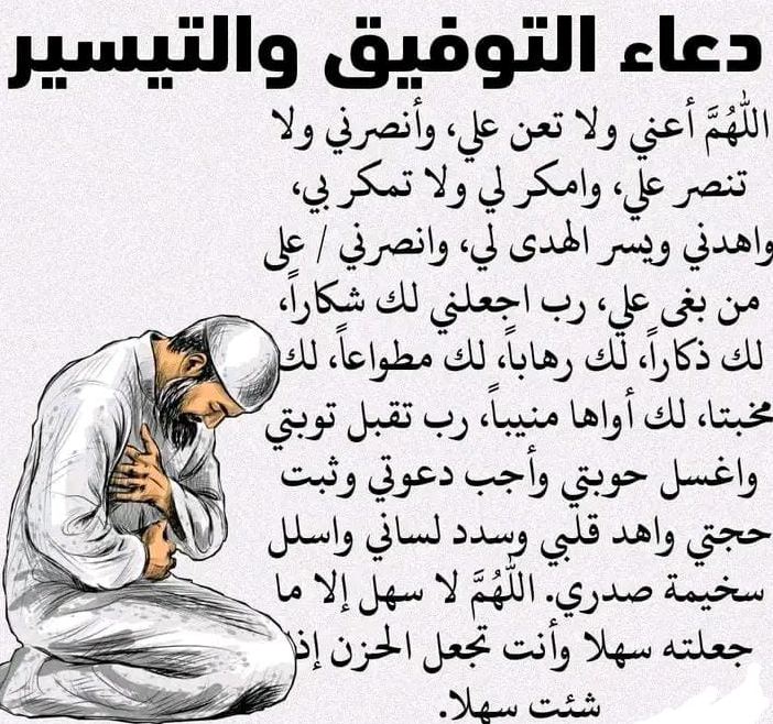 - اللهم إني أسألك توفيقا يضيء طريقي وعلمًا نافعًا ورزقًا طيبًا وعملًا متقبلًا.