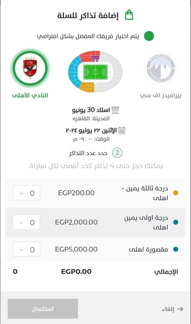 مقصورة- أهلي: 5000 جنيه.