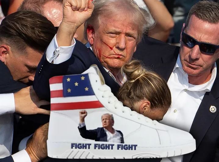 يبيع متجر إلكتروني للأحذية مملوك لـ دونالد ترامب، الرئيس الأمريكي السابق، أحذية رياضية تحمل الصورة الأيقونية للرئيس الأمريكي السابق بعد لحظات من إطلاق النار عليه ومحاولة اغتياله، مع إصدار محدود بسعر 299 دولارًا، وفقًا لـ tmz.