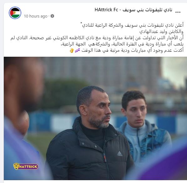 وقال تليفونات بني سويف في بيانه: أعلن نادي تليفونات بني سويف والشركة الراعية للنادي والكابتن وليد عبد الهادي، أن الأخبار التي تداولت عن إقامة مباراة ودية مع نادي الكاظمه الكويتي غير صحيحة.